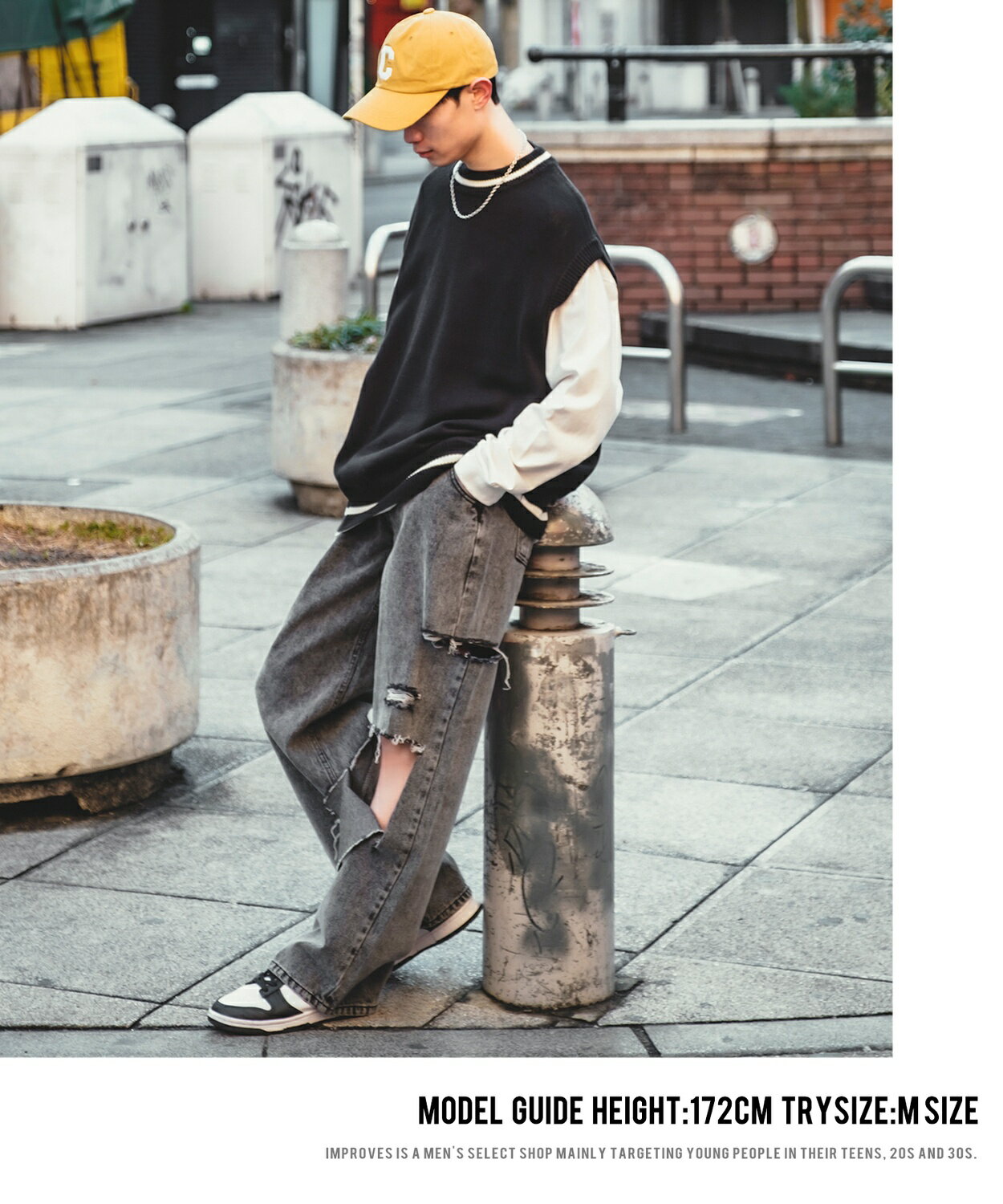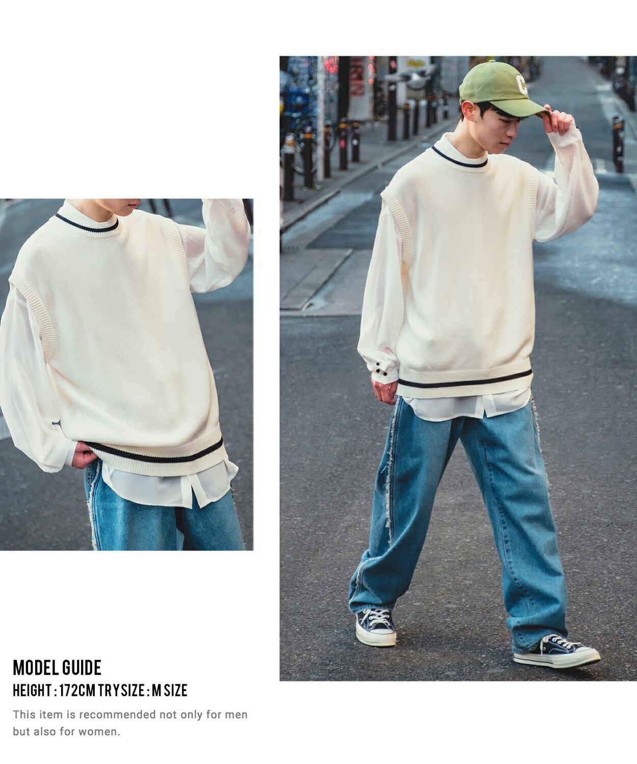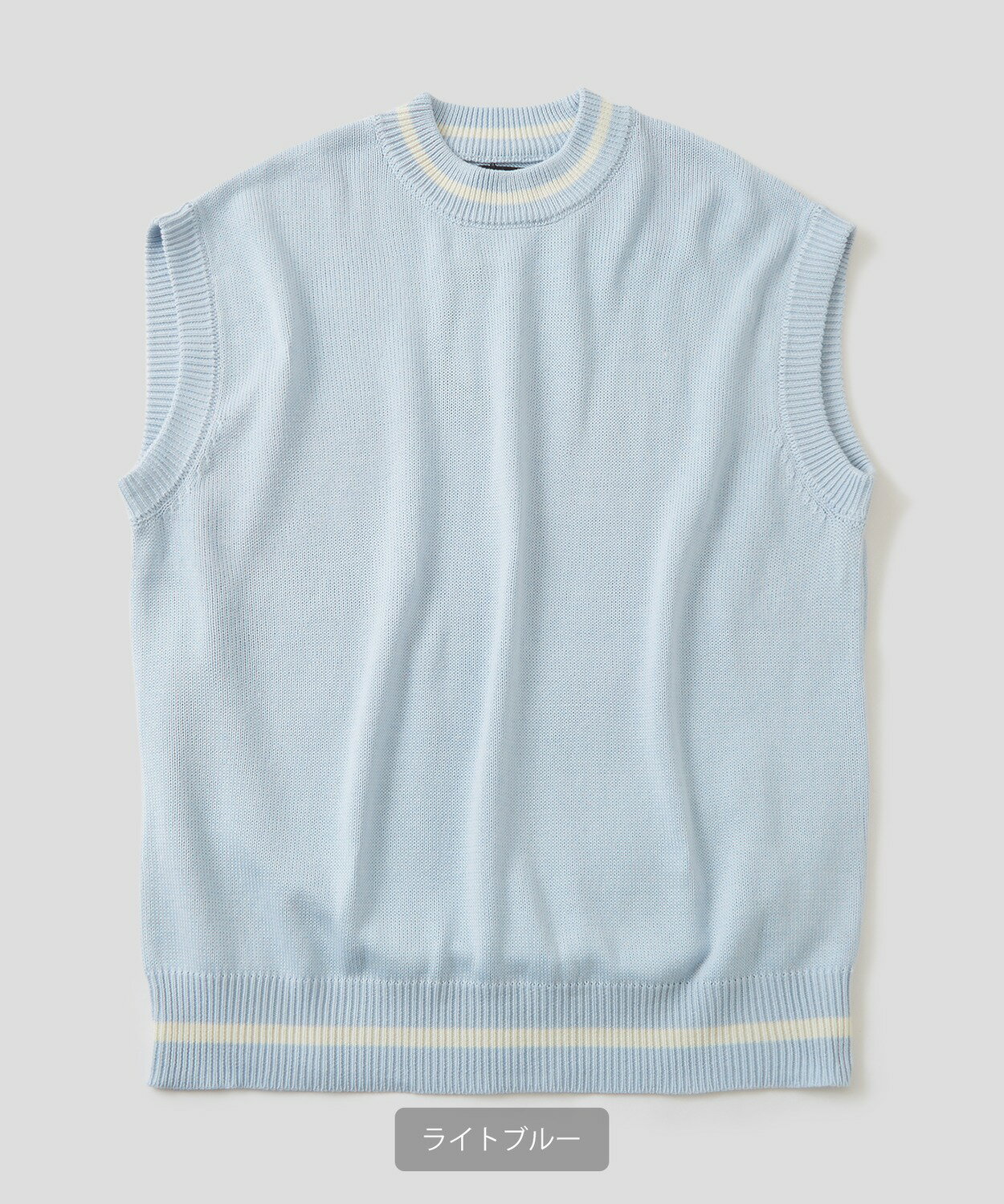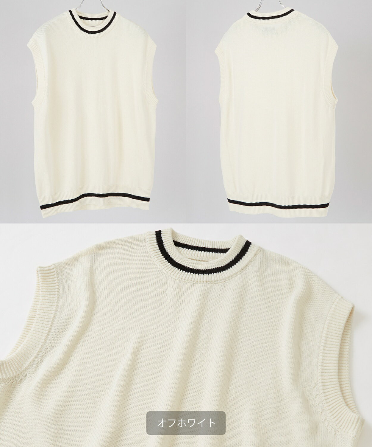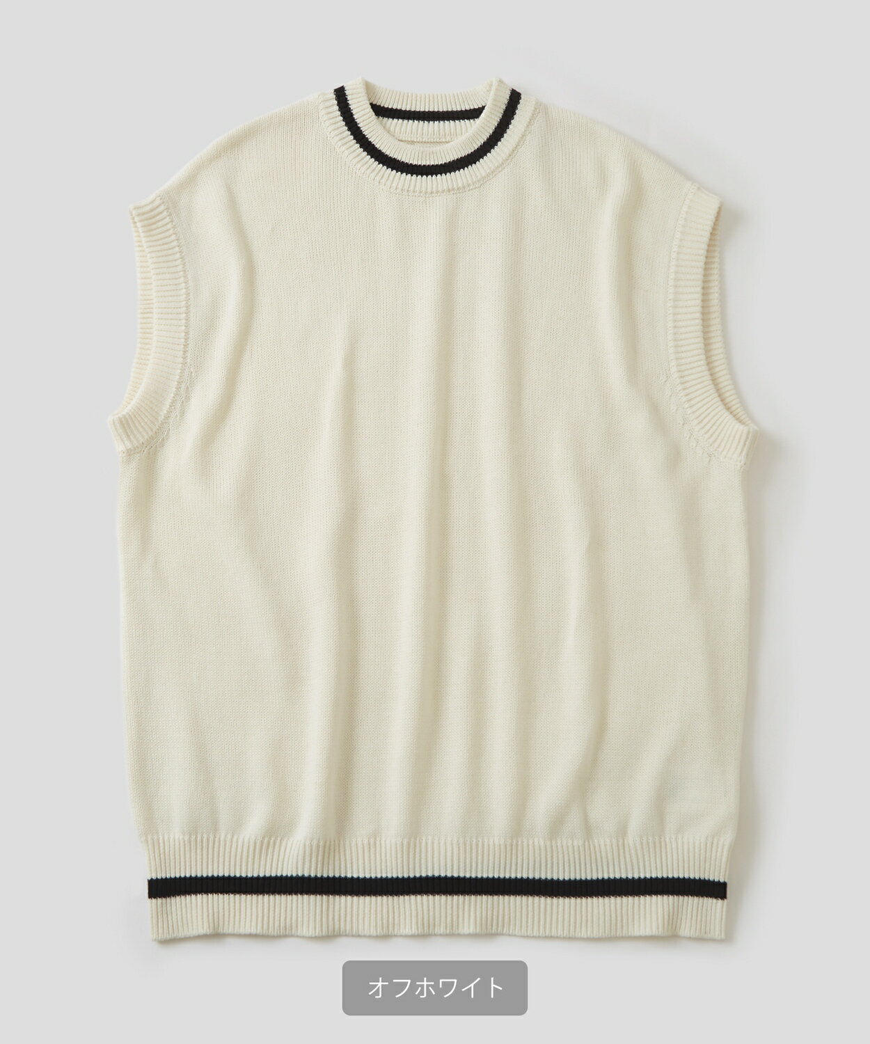 【SALE / 25%OFF】ニットベスト メンズ レディース NULL ヌル チルデン クルーネック ライン テニス ニット ビッグサイズ オーバーサイズ 大きめ アメカジ カジュアル ストリート 韓国ファッション きれいめ トラッド スクール オフホワイト ブラック ライトブルー