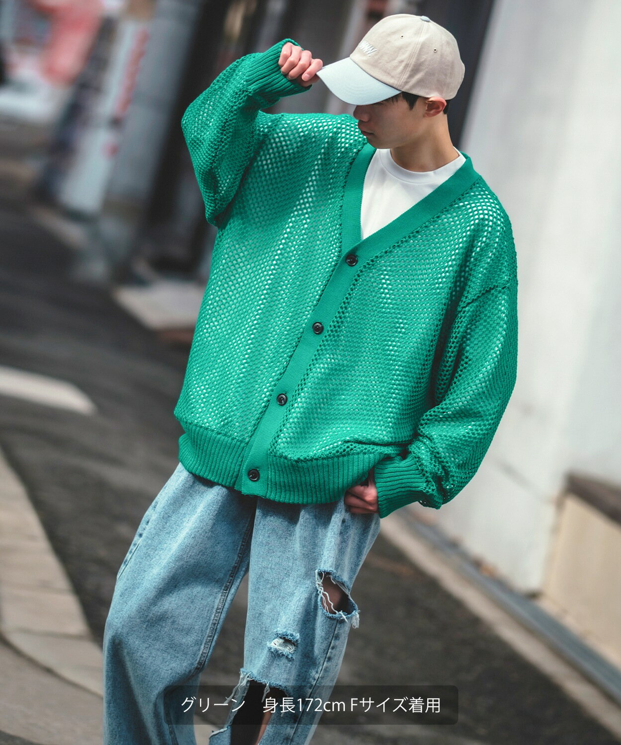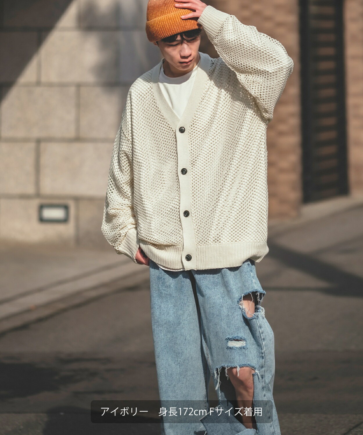 【SALE / 15%OFF】カーディガン メンズ レディース NULL ヌル 透かし編み レース編み メッシュ ニット ビッグサイズ オーバーサイズ 大きめ きれいめ カジュアル シンプル ノームコア ナチュラル モード 韓国ファッション ストリート アイボリー グリーン ブラック
