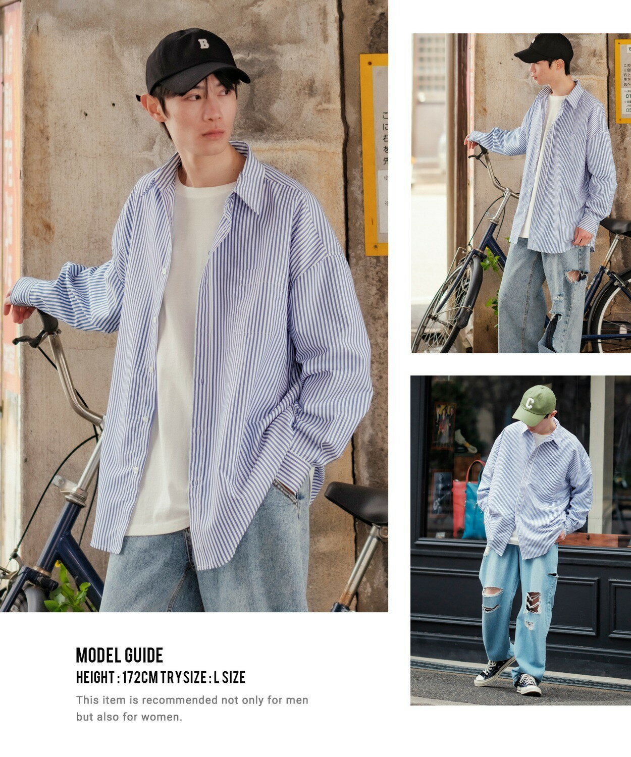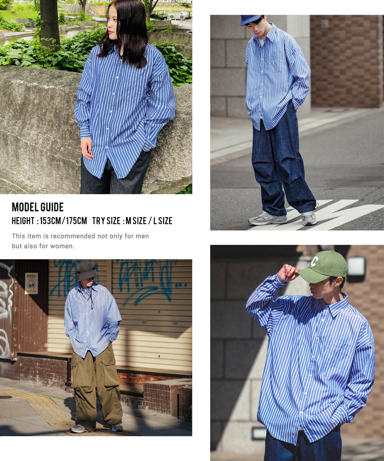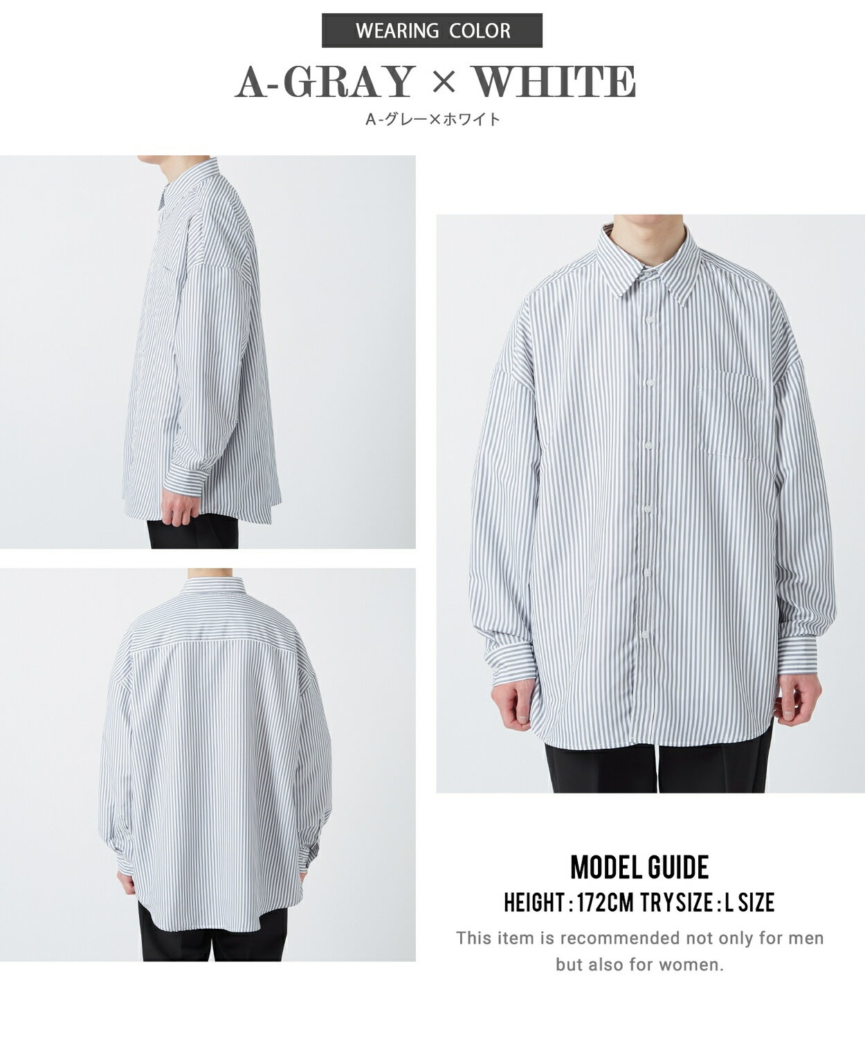 長袖シャツ メンズ レディース NULL ヌル ストライプ レギュラーカラー 速乾 接触冷感 イージーケア ビッグサイズ オーバーサイズ 大きめ アメカジ カジュアル ストリート 韓国ファッション 古着MIX グレー サックス ホワイト ブルー ブラック