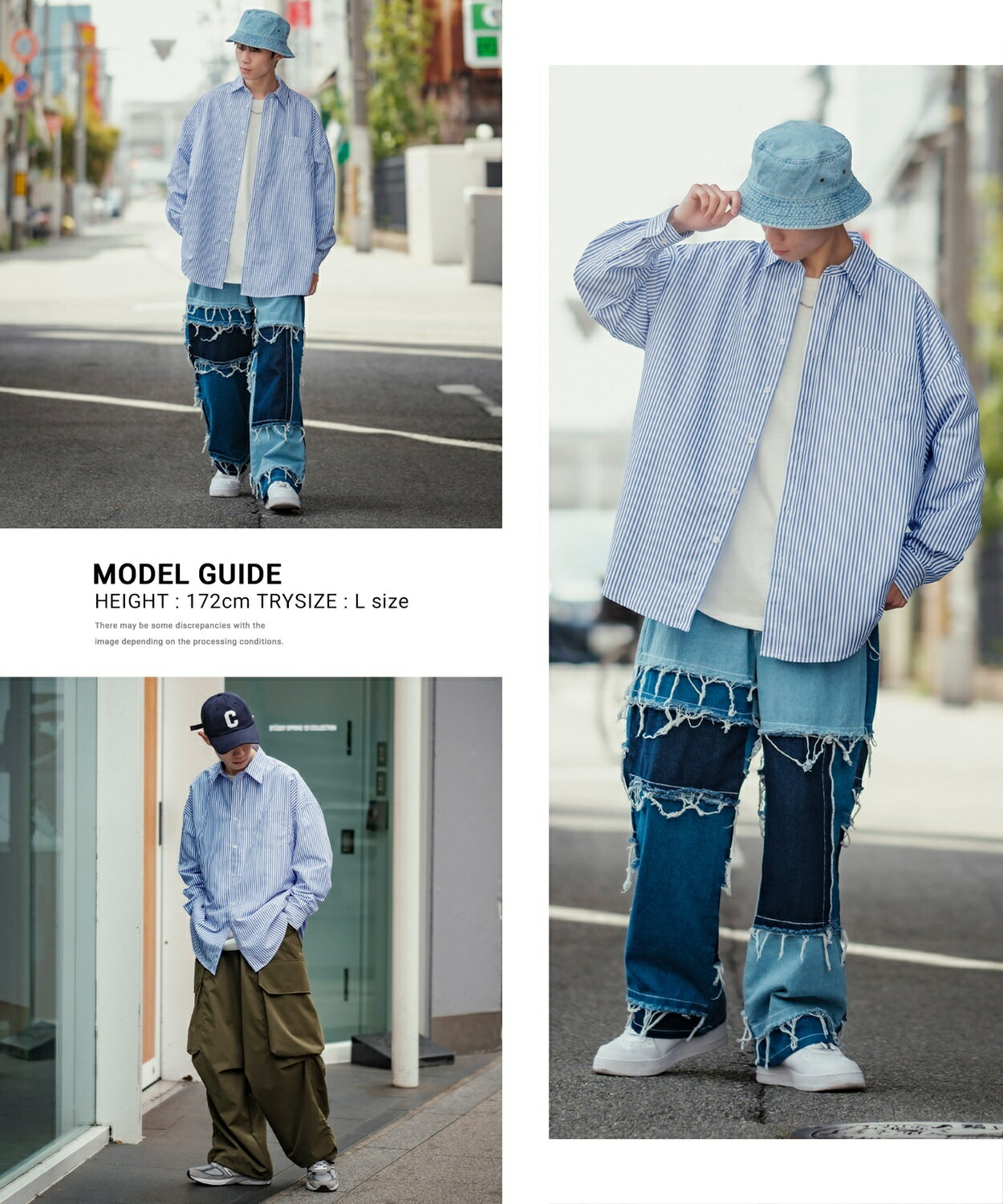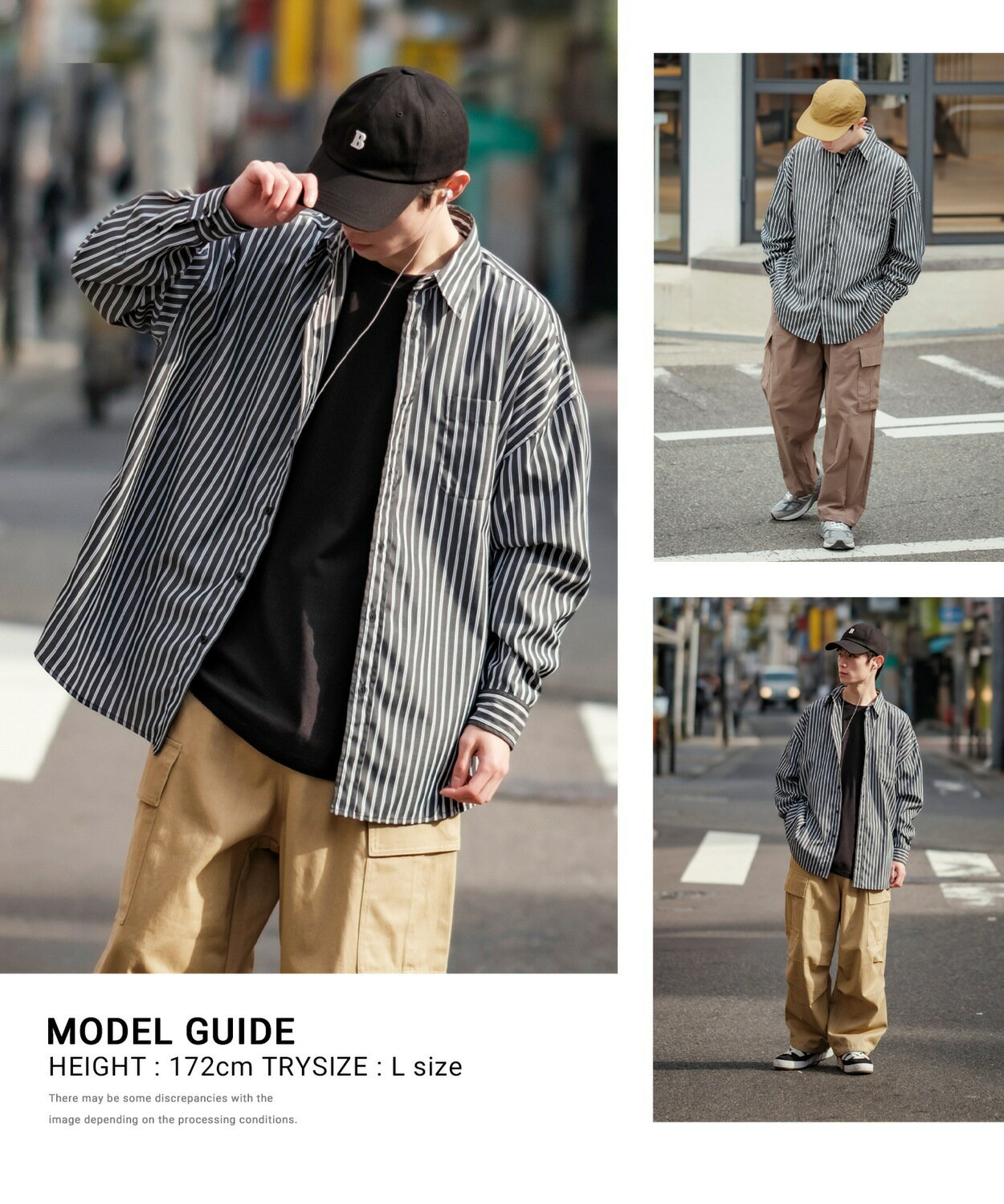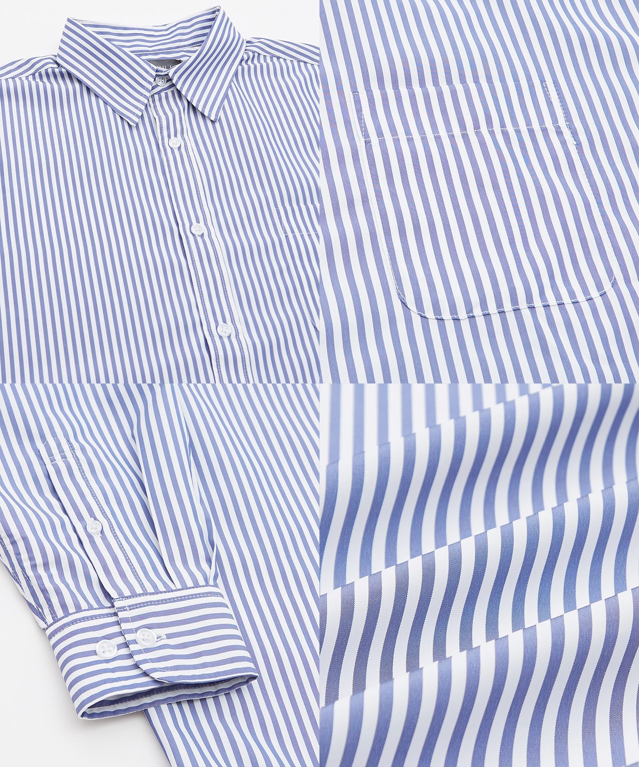 長袖シャツ メンズ レディース NULL ヌル ストライプ レギュラーカラー 速乾 接触冷感 イージーケア ビッグサイズ オーバーサイズ 大きめ アメカジ カジュアル ストリート 韓国ファッション 古着MIX グレー サックス ホワイト ブルー ブラック