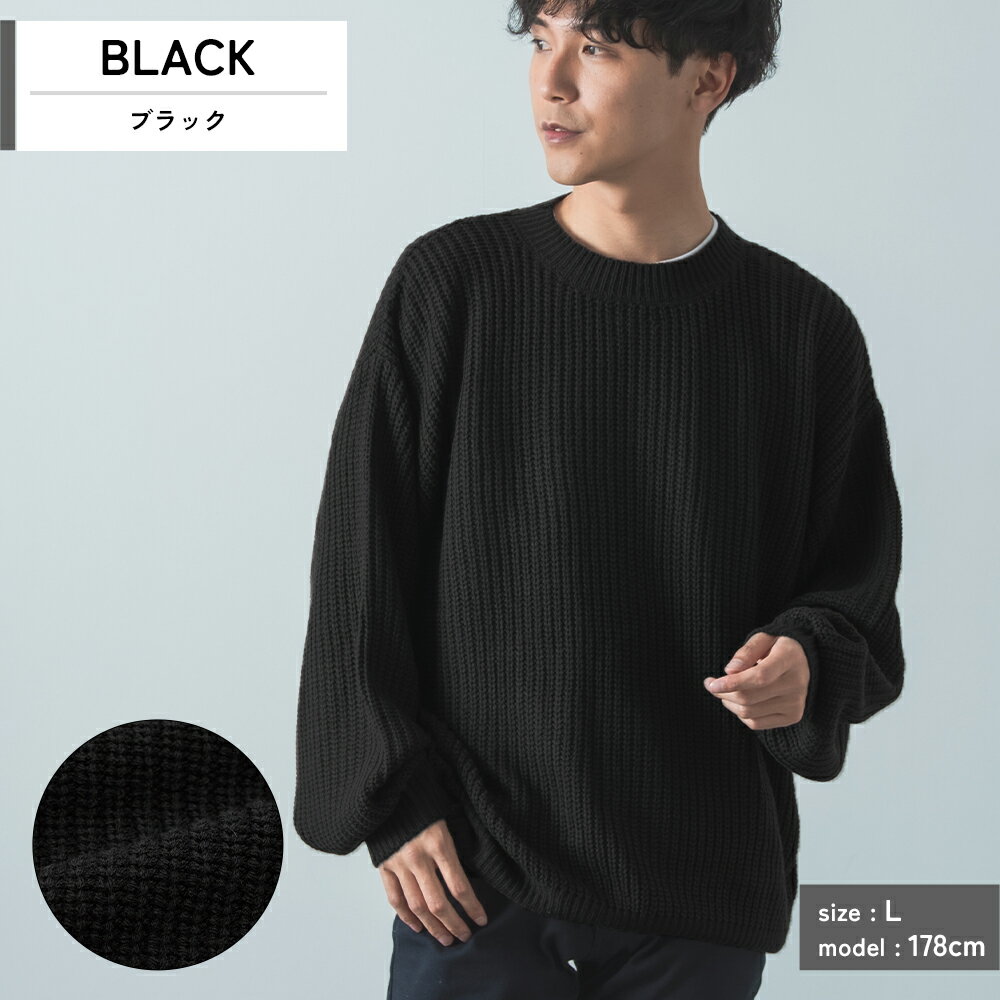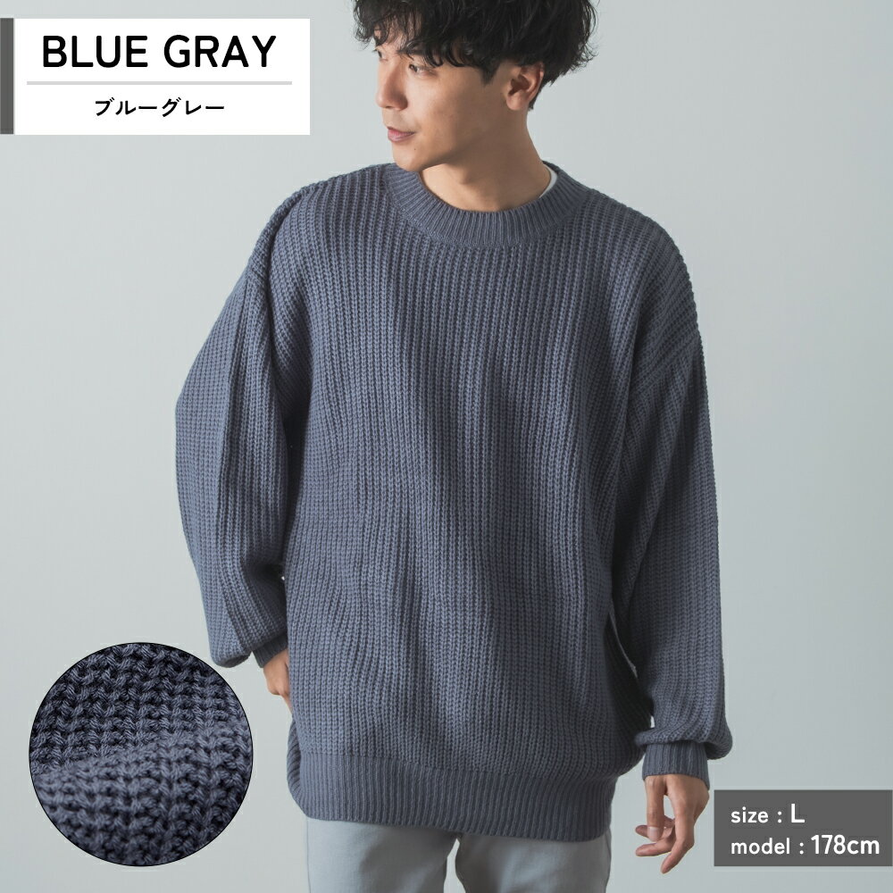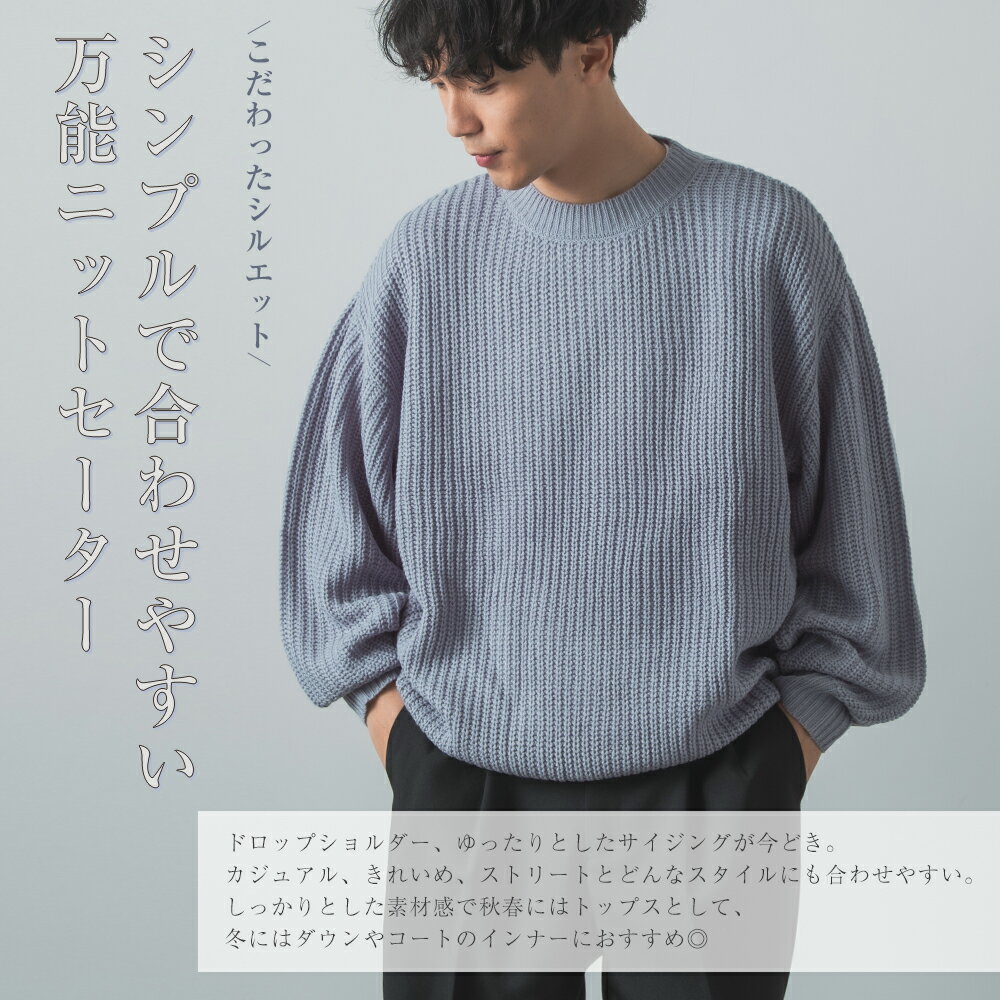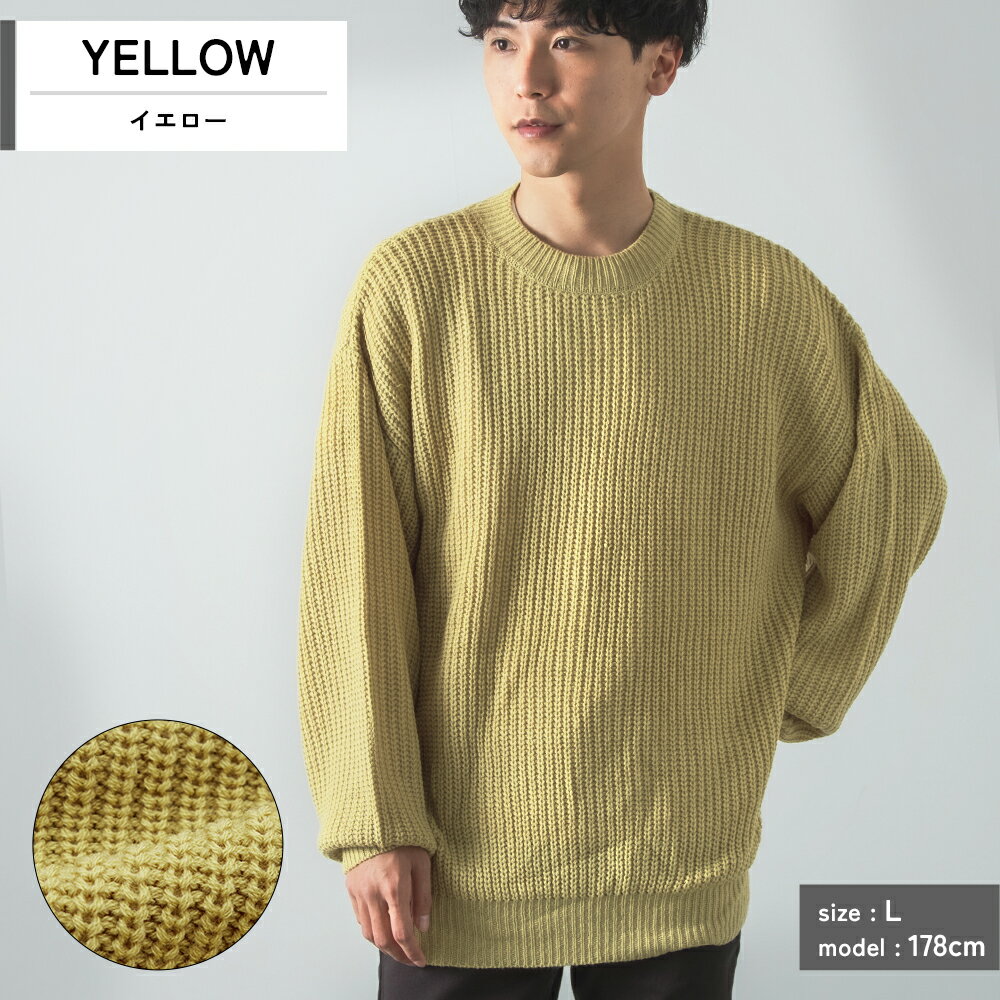 【SALE / 31%OFF】ニットセーター メンズ レディース クルーネック 畦編み 長袖 トップス オーバーサイズ ビッグサイズ 大きいサイズ ゆったり カジュアル シンプル ストリート スケーター アメカジ ブラック ブルー イエロー グリーン チャコール ベージュ