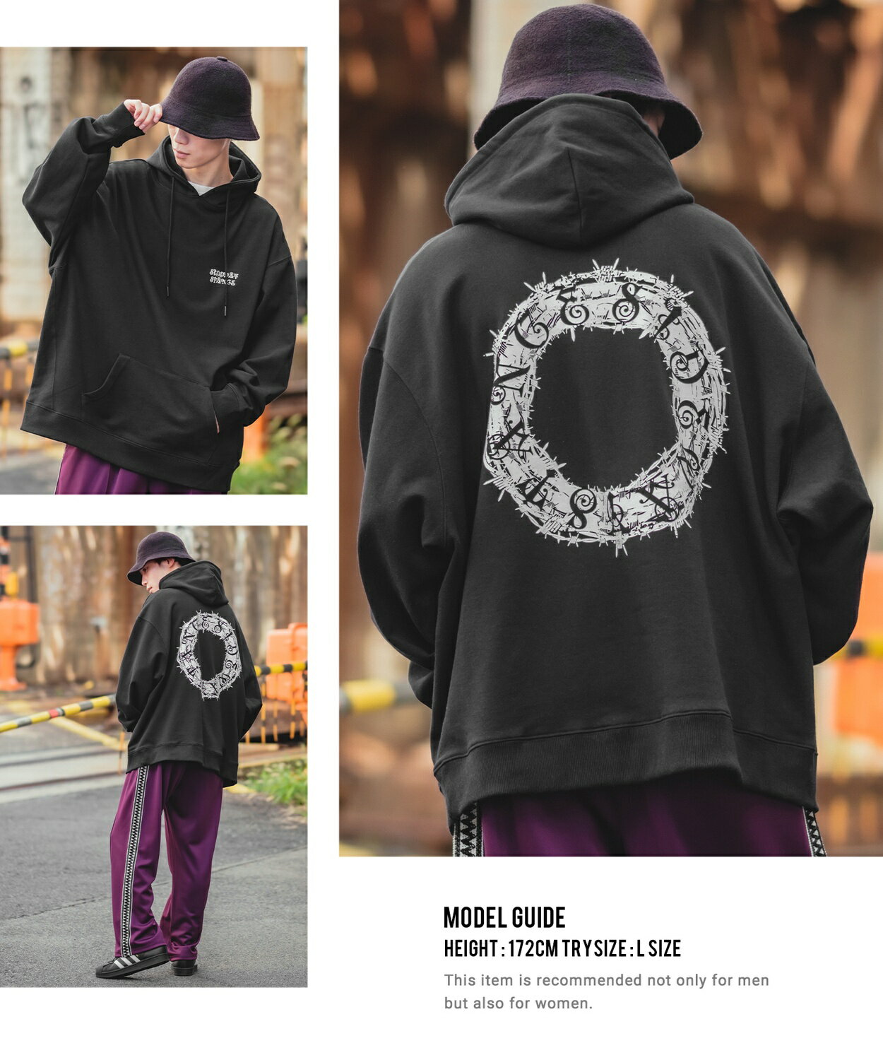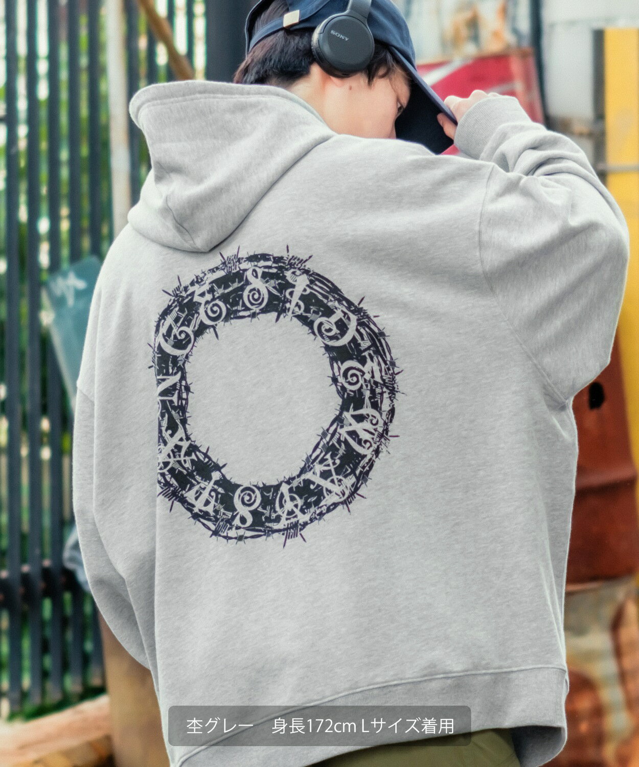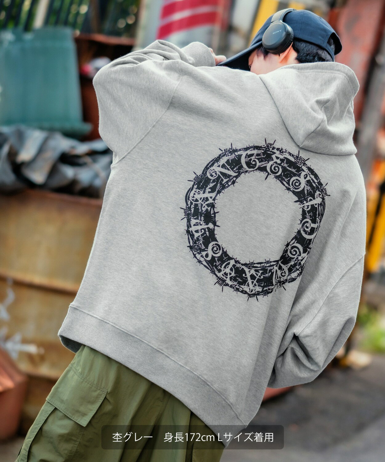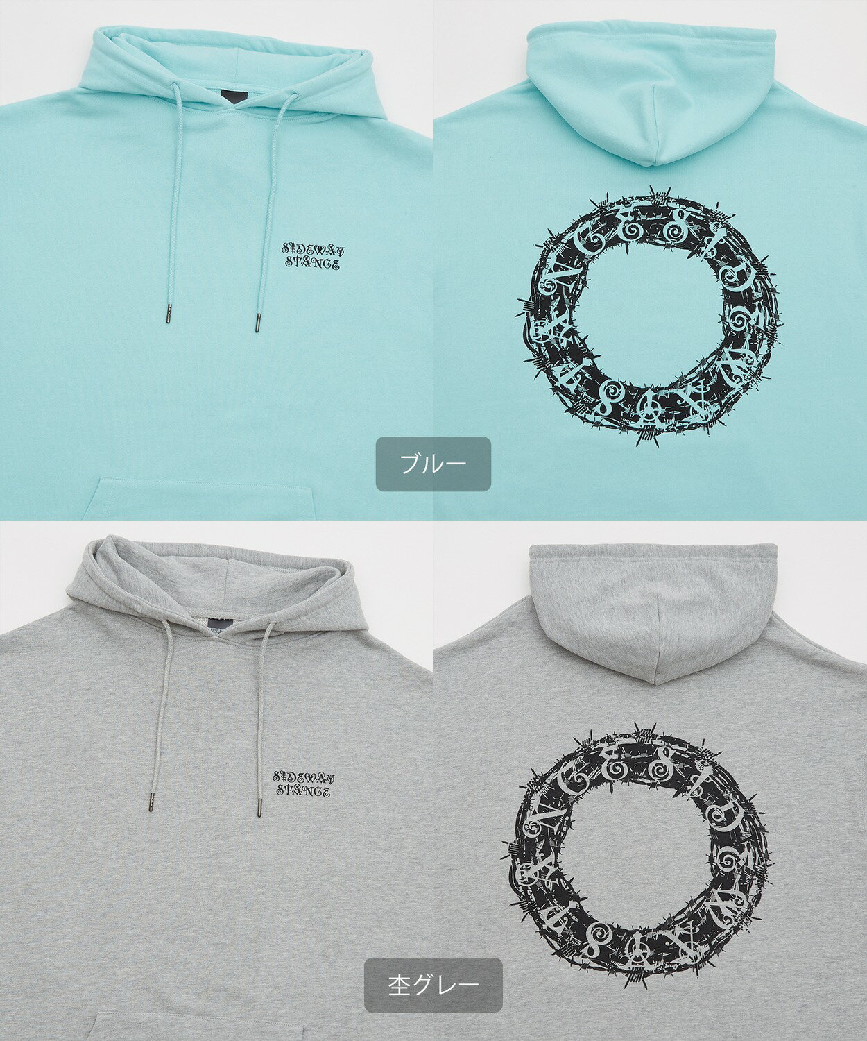 パーカー メンズ レディース SIDEWAY STANCE サイドウェイスタンス オリジナルプリント グラフィック スウェット サークルワイヤー オーバーサイズ 大きめ アメカジ カジュアル スケーター ストリート 韓国ファッション