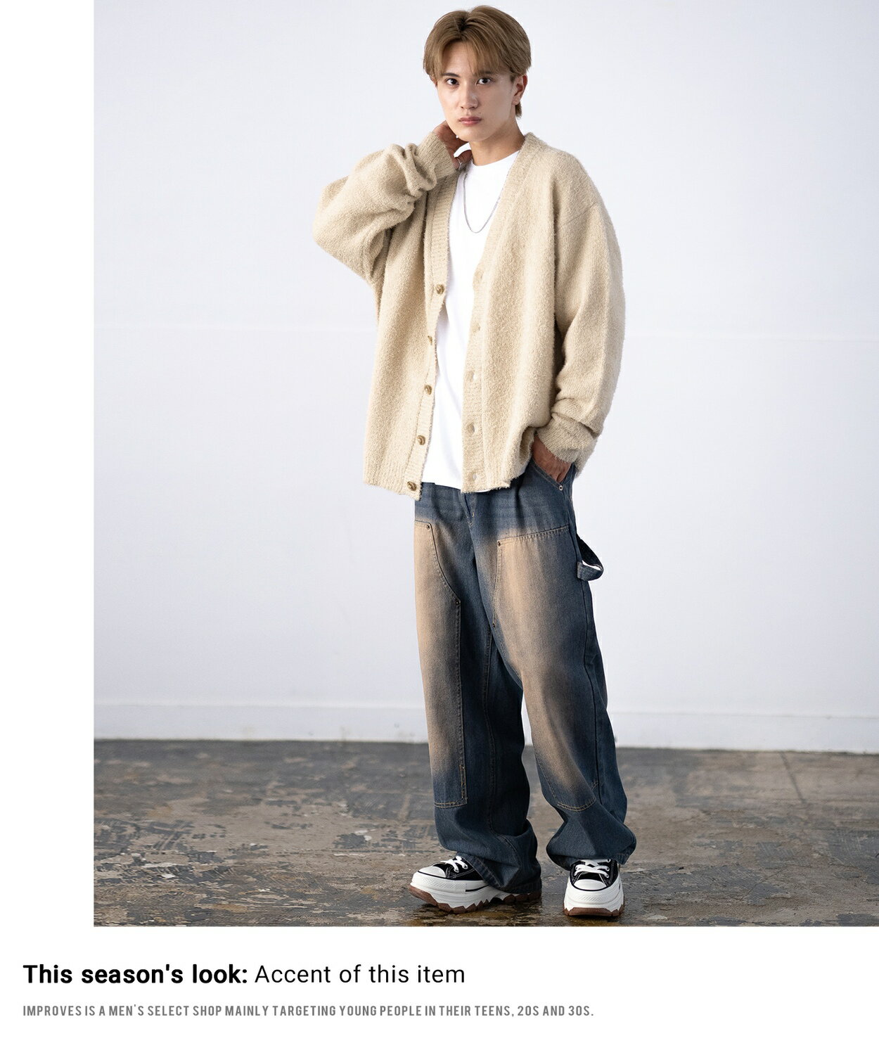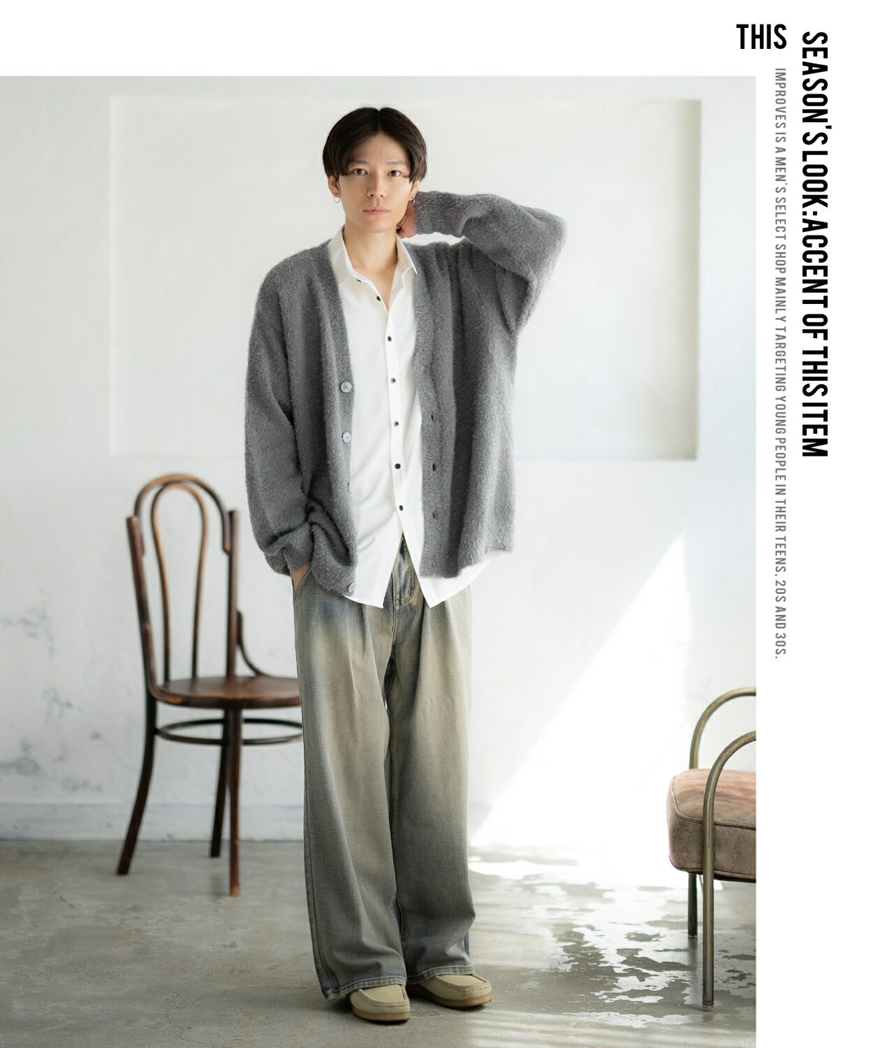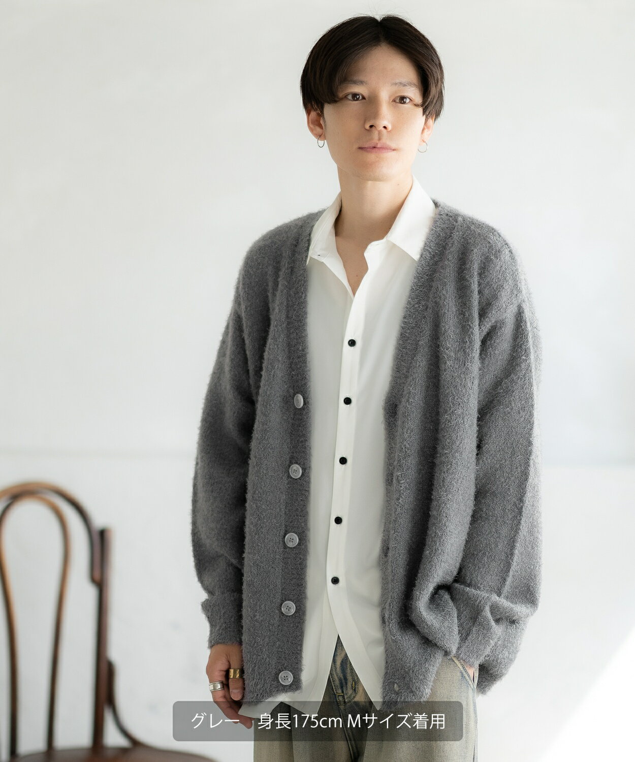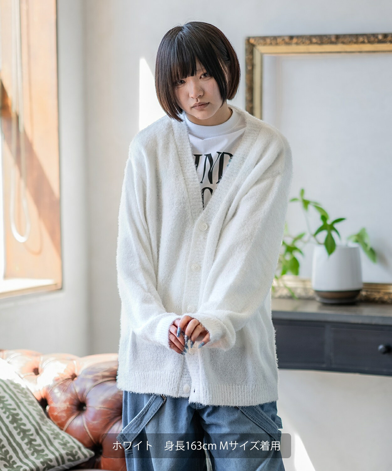 【SALE / 16%OFF】カーディガン メンズ レディース フェザーヤーン Vネックニット 無地 オーバーサイズ アメカジ カジュアル シンプル ストリート スケーター 韓国ファッション