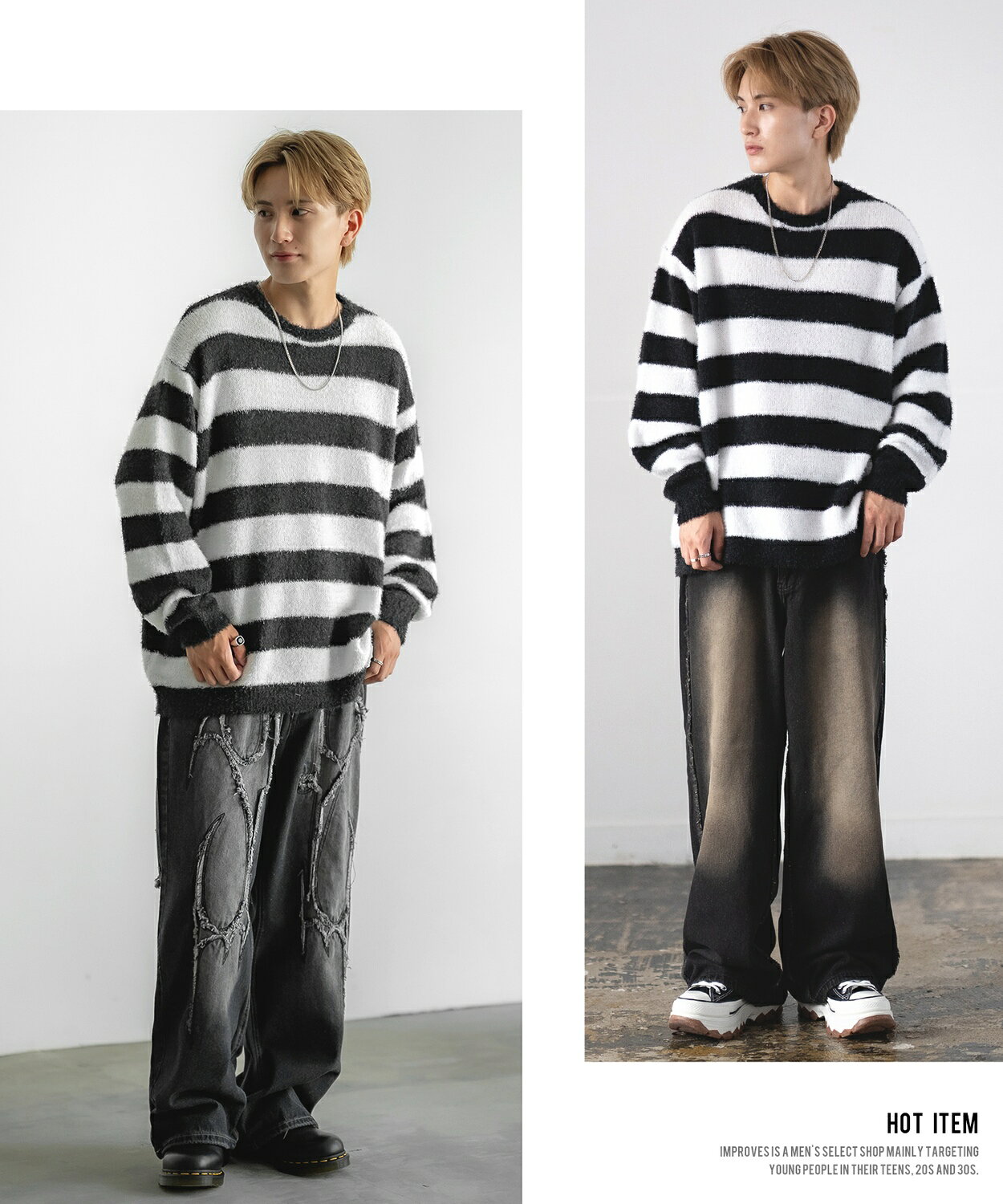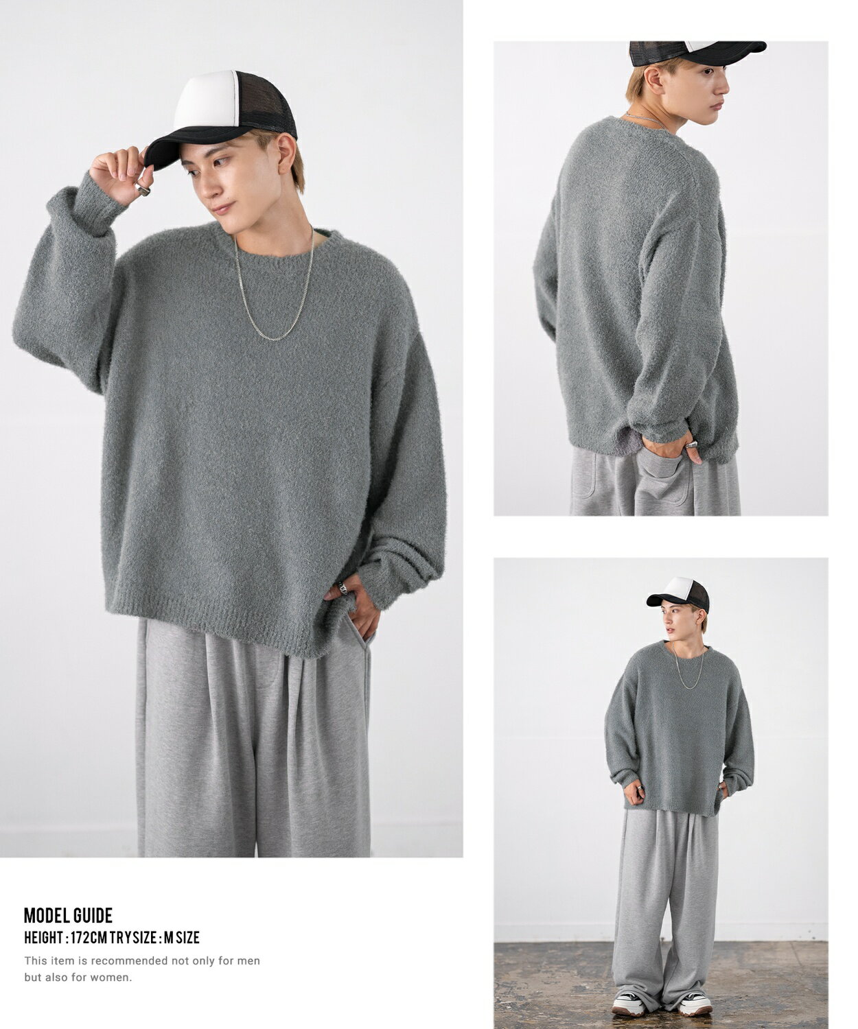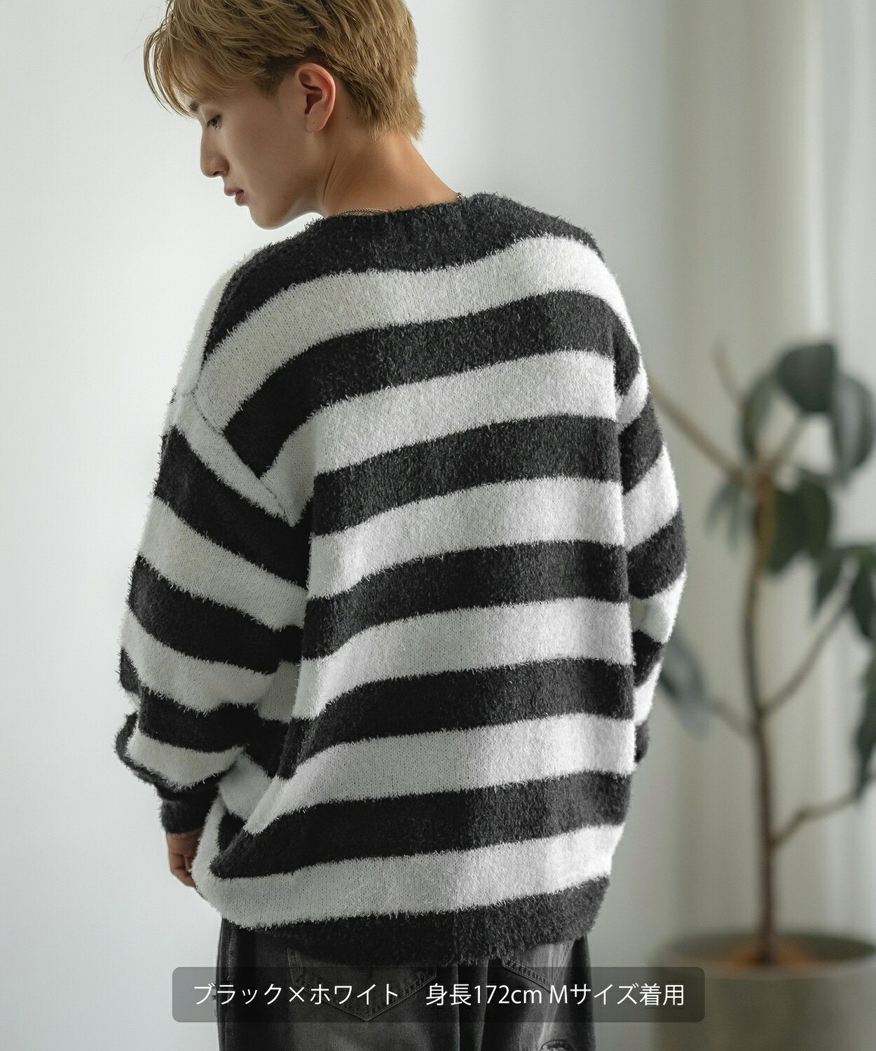 セーター メンズ レディース フェザーヤーン クルーネックニット 無地 ボーダー 総柄 アメカジ カジュアル シンプル ストリート スケーター 韓国ファッション
