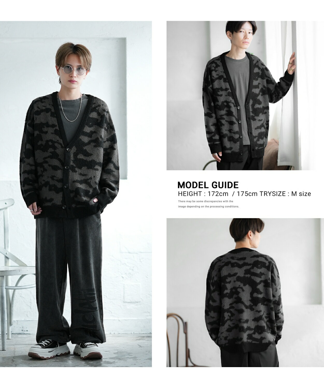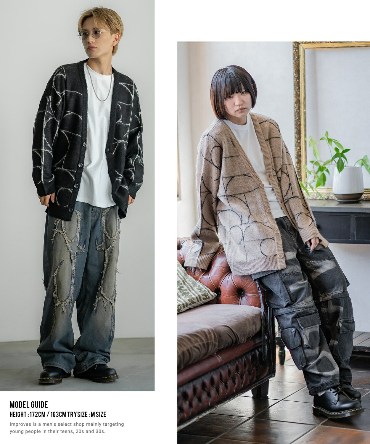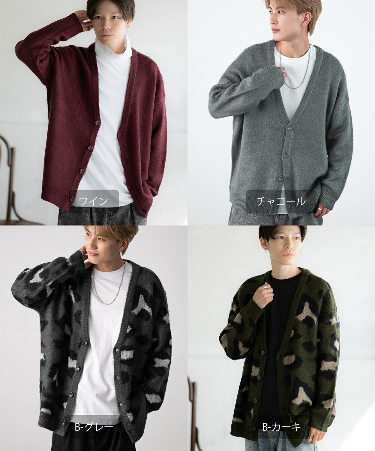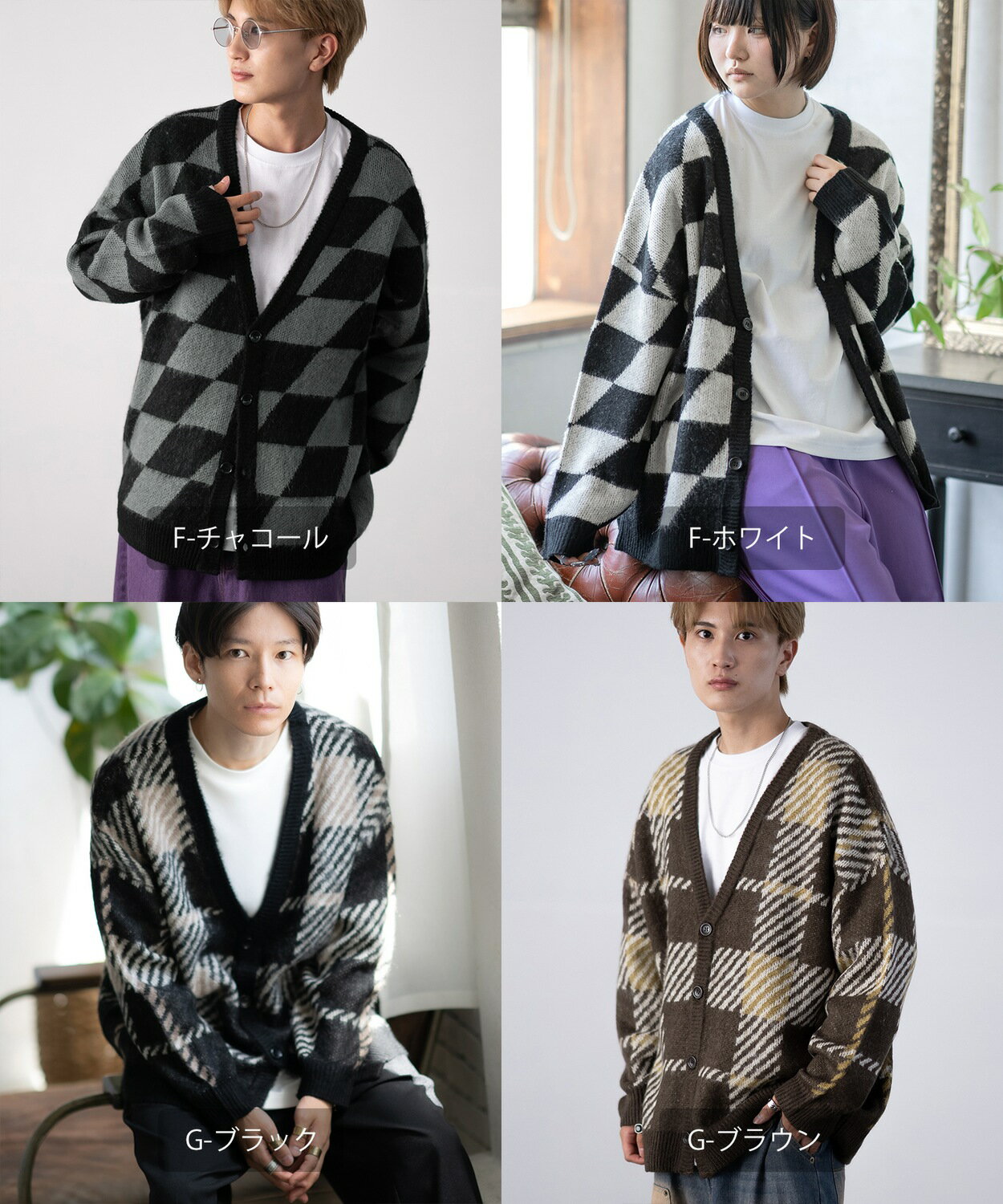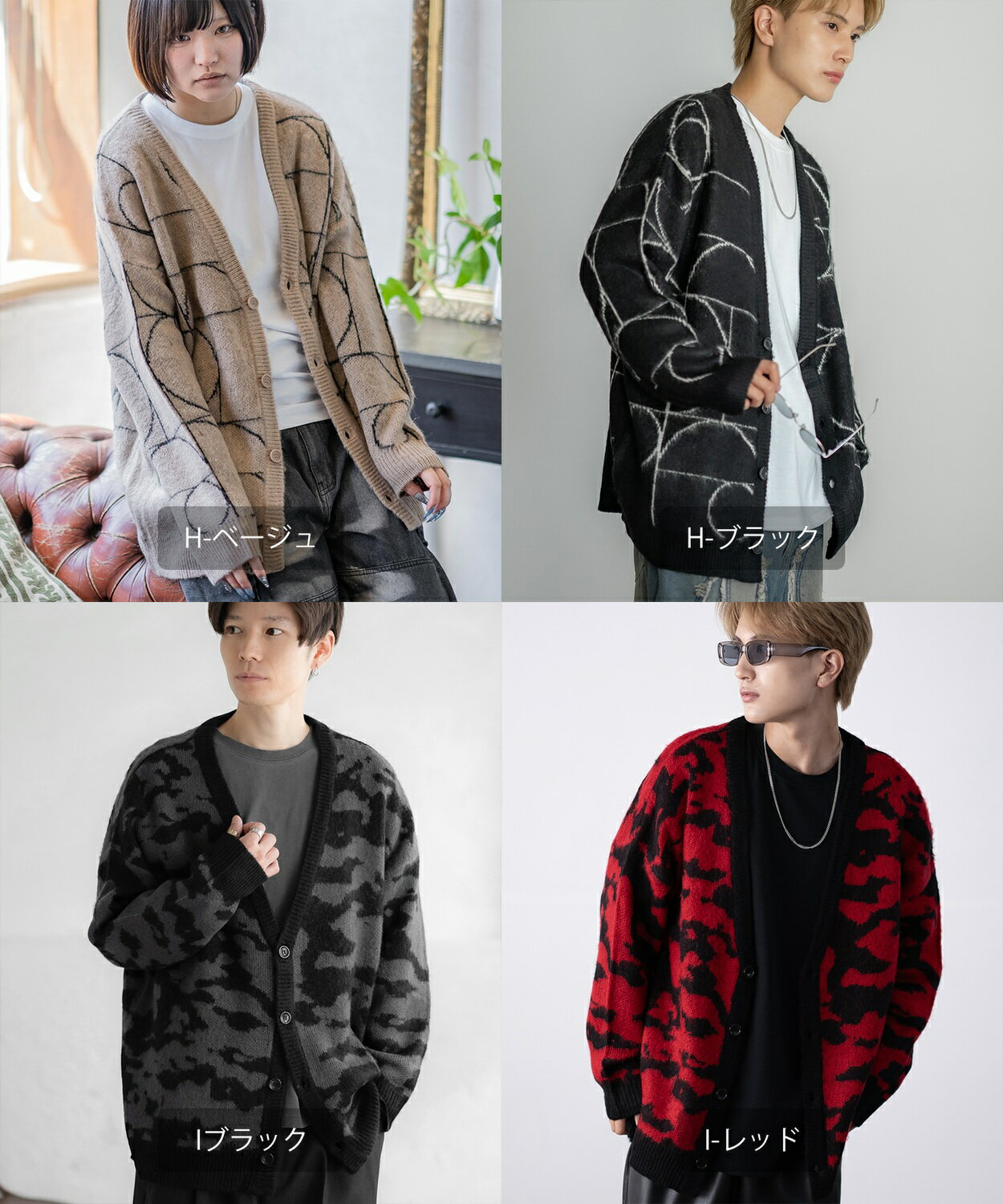 【SALE / 26%OFF】カーディガン メンズ レディース モヘアタッチ Vネックニット 無地 チェック ヒョウ柄 迷彩 総柄 アメカジ カジュアル シンプル ストリート スケーター 韓国ファッション