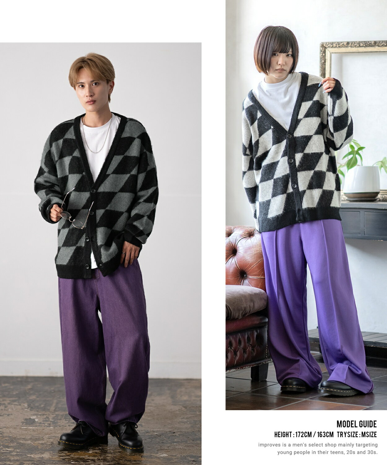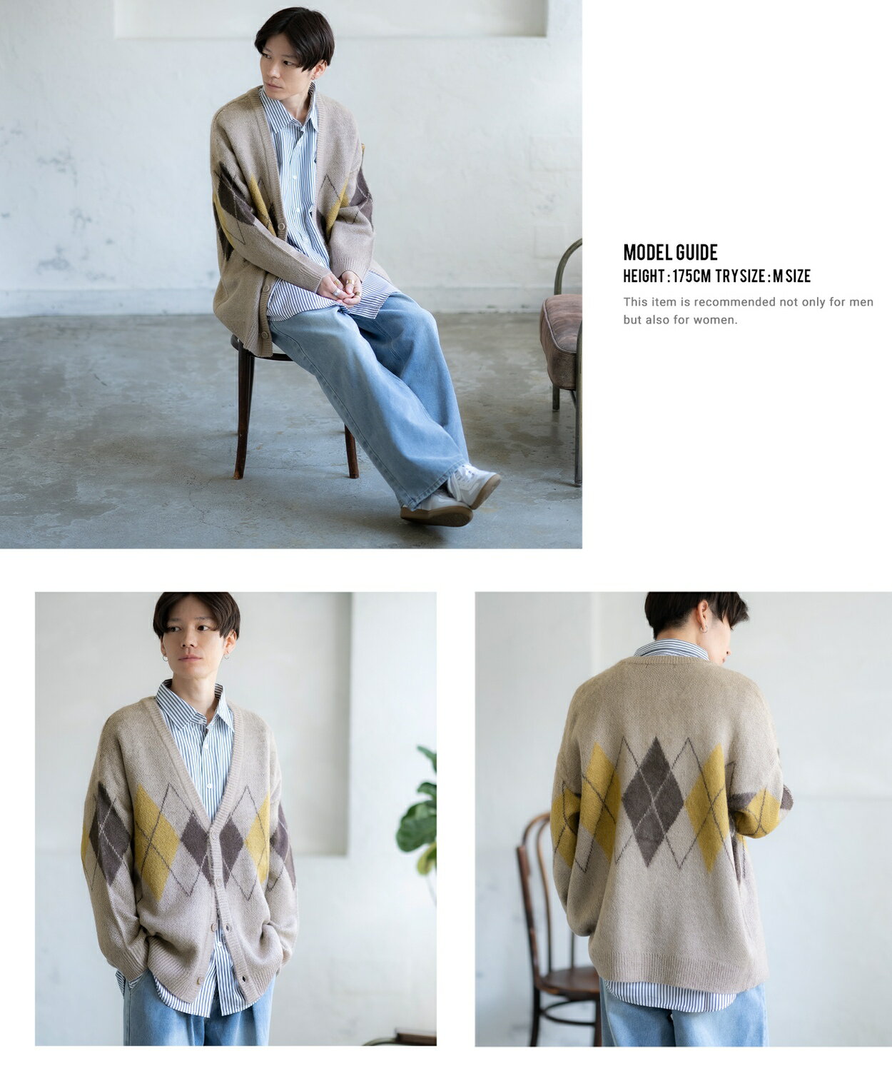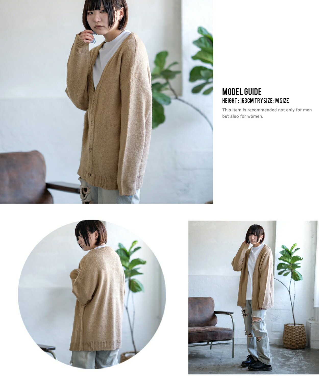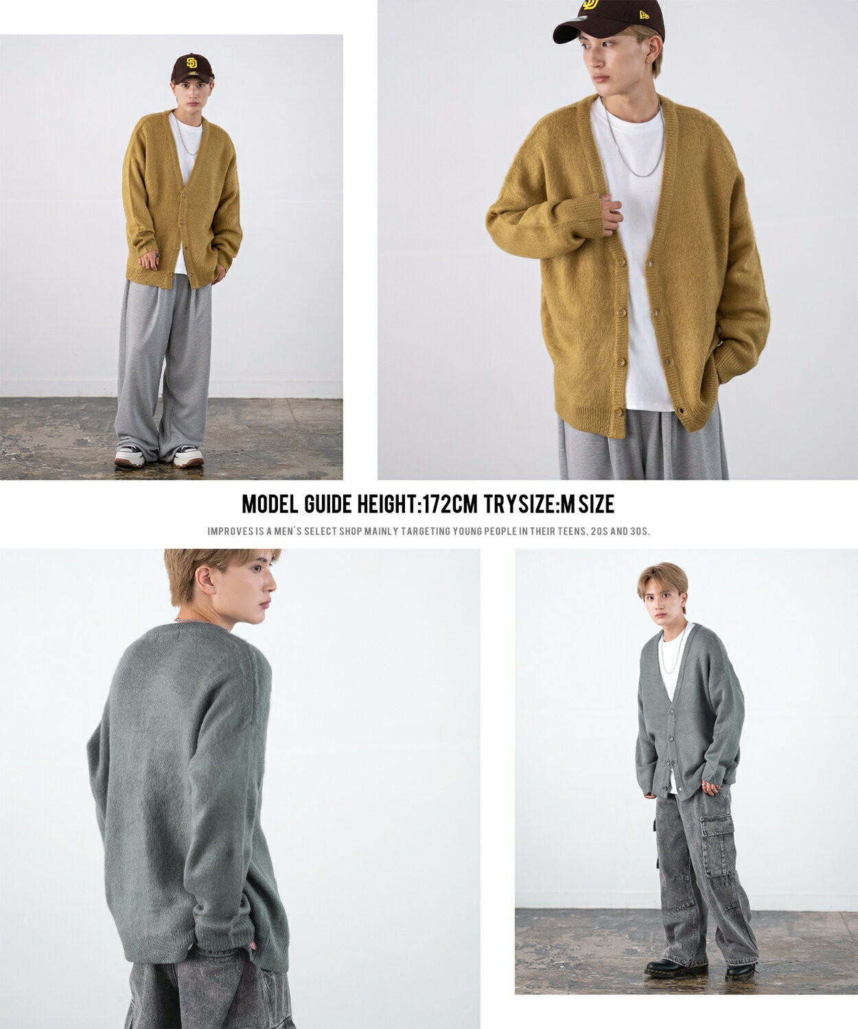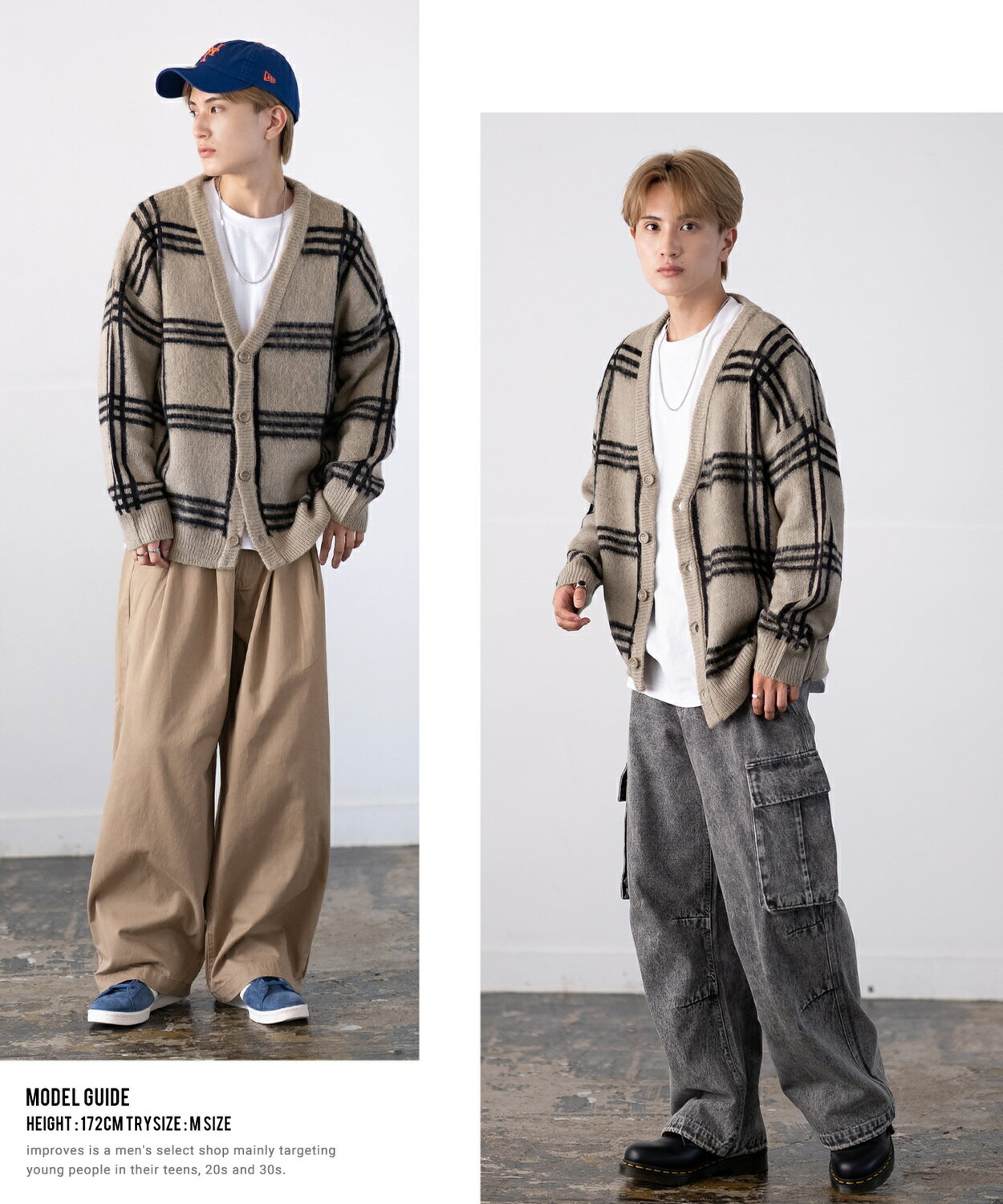【SALE / 26%OFF】カーディガン メンズ レディース モヘアタッチ Vネックニット 無地 チェック ヒョウ柄 迷彩 総柄 アメカジ カジュアル シンプル ストリート スケーター 韓国ファッション