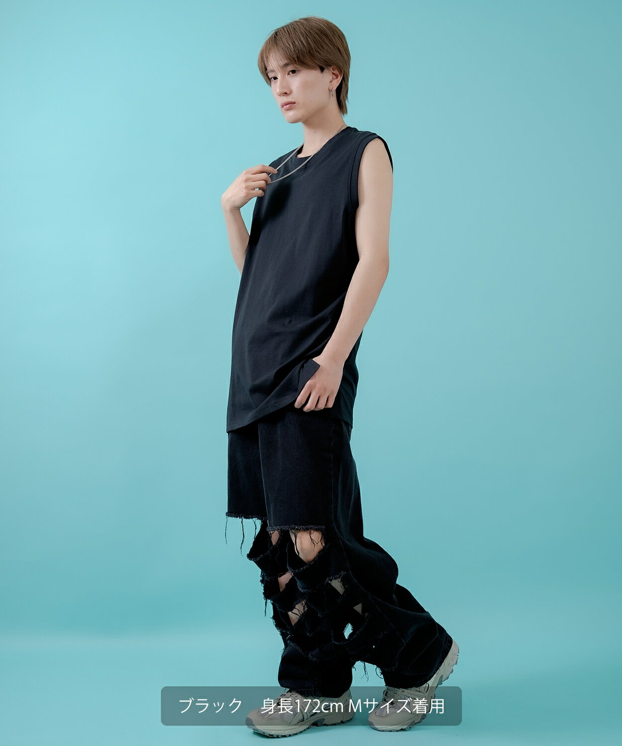 【SALE / 16%OFF】Tシャツ メンズ レディース ノースリーブ タンクトップ ロング カジュアル アメカジ ストリート スケーター 古着MIX 韓国ファッション ホワイト グレー ブラック