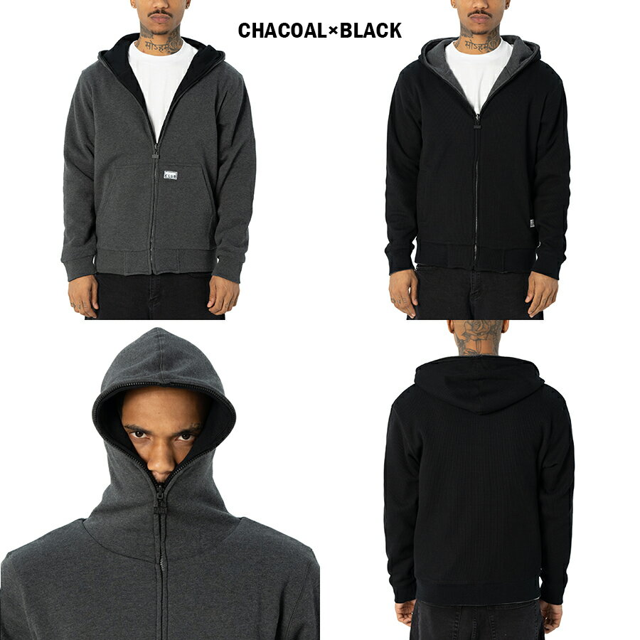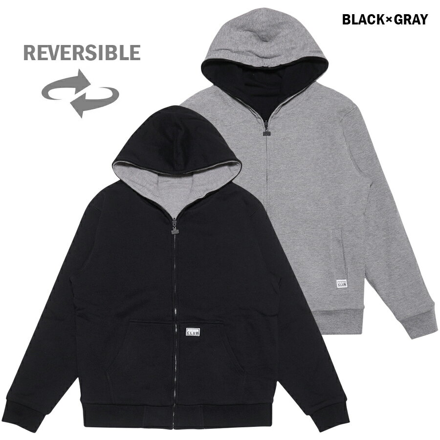 【送料無料】PRO CLUB HEAVYWEIGHT BASIC REVERSIBLE THERMAL ZIP UP HOODIE【BLACK×GRAY/CHACOAL×BLACK】(M・L・XL・2XL)(プロクラブ 通販 メンズ 大きいサイズ パーカー スウェット ジップアップ フーディー フード ヘビーウエイト 厚手 リバーシブル サーマル)