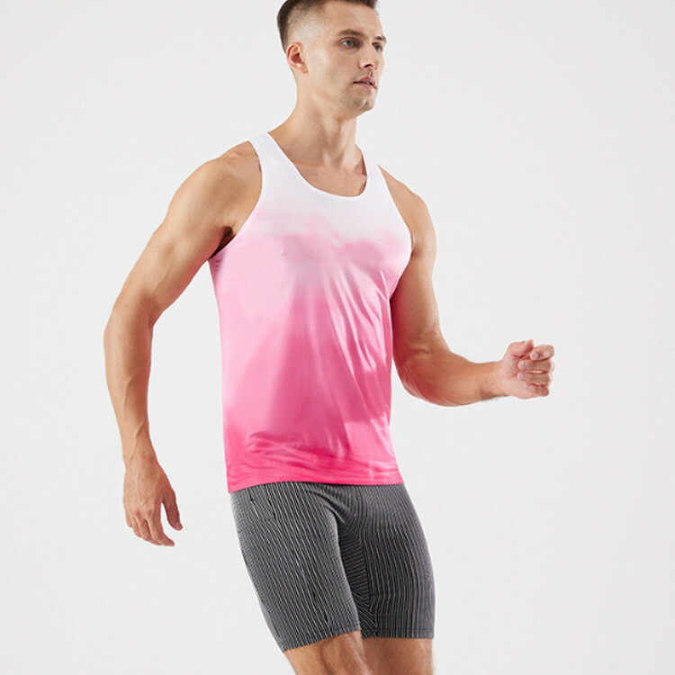 ノースリーブ タンクトップ メンズ 肌着 吸汗 速乾 軽量 グラデーション ジムウェア スポーツインナー レーサーバック Uネック トップス 通気性 ストレッチ ダンス トレーニング ランニング フィットネスウェア スポーティ おしゃれ グリーン ピンク ブルー パープル