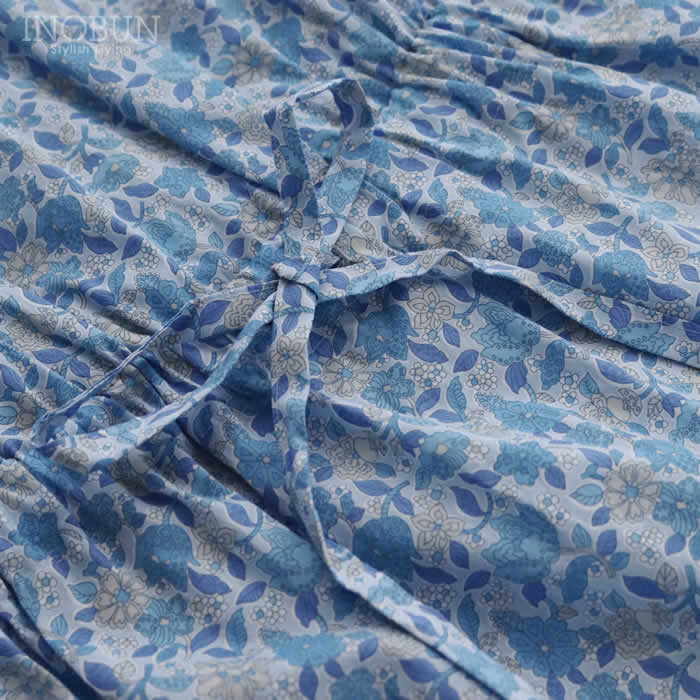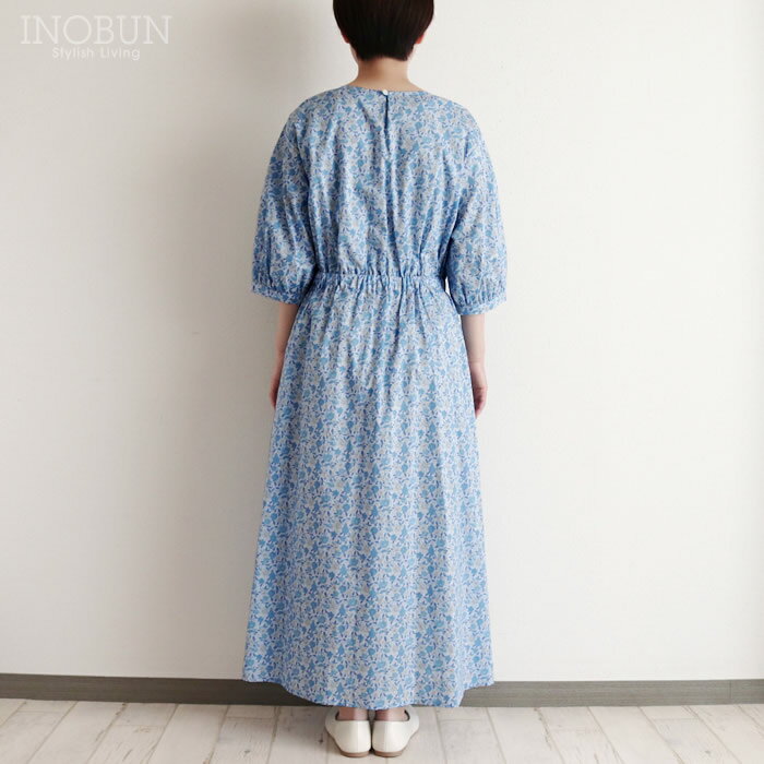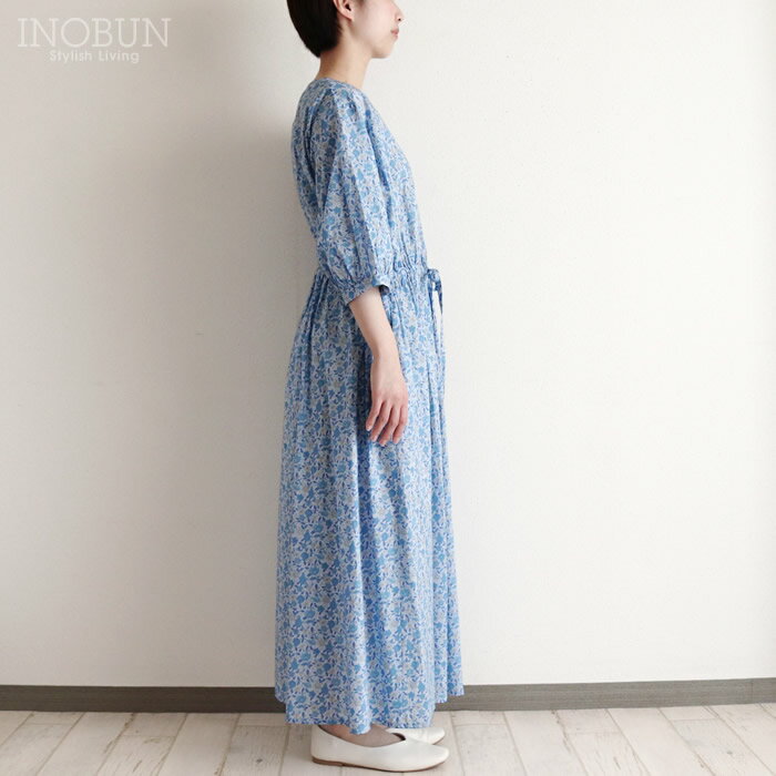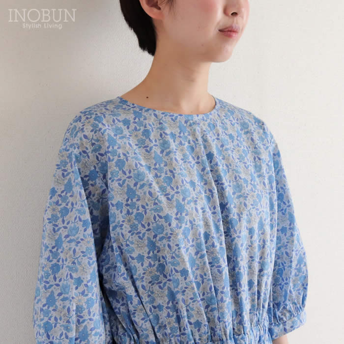 イノブン別注 Michel Beaudouin リバティ クルーネックワンピース 水色系 五分袖 サイズ1 ミシェルボードワン