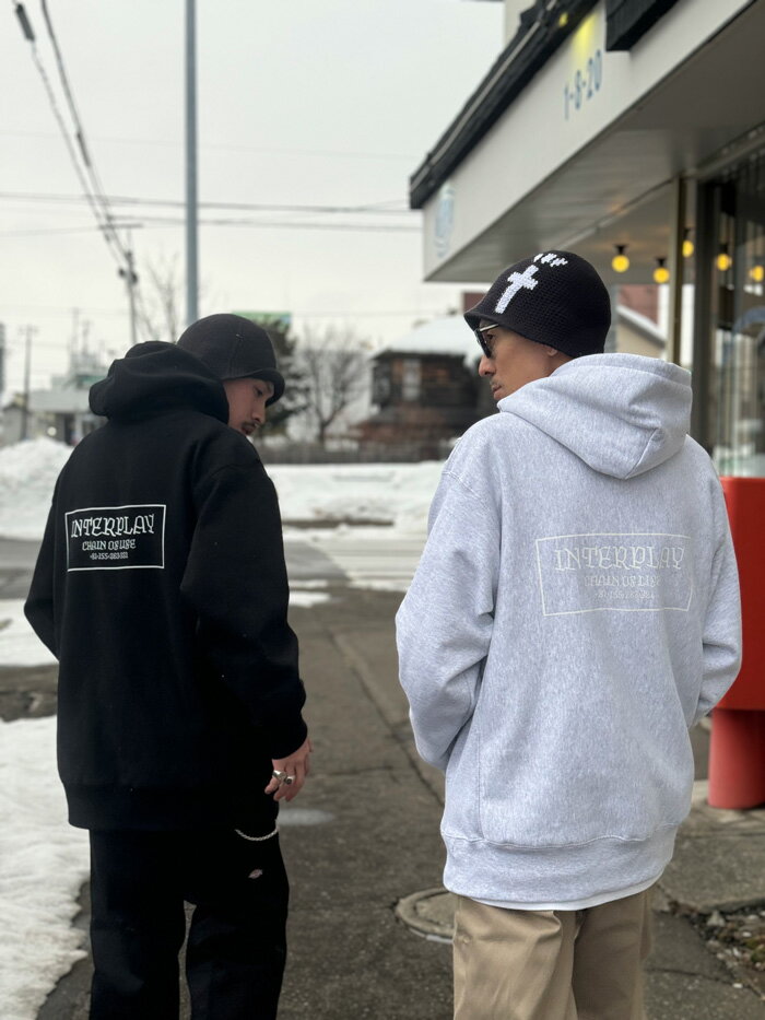 INTERPLAY ORIGINALCHAIN OF LIFE HOODIE【INTERPLAY インタープレイ オリジナル】【フーディー パーカー ブラック グレー】