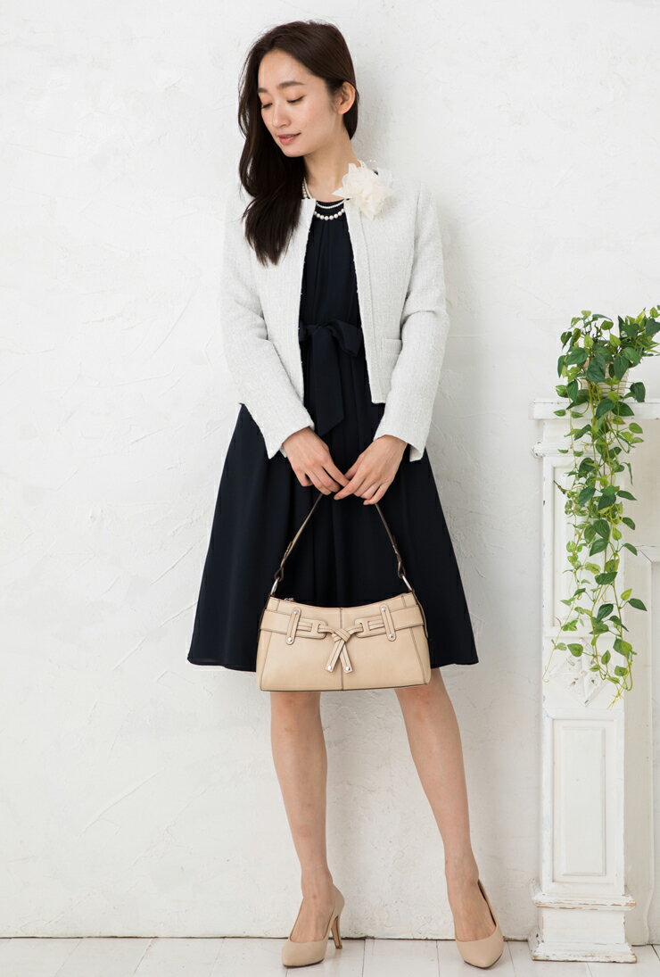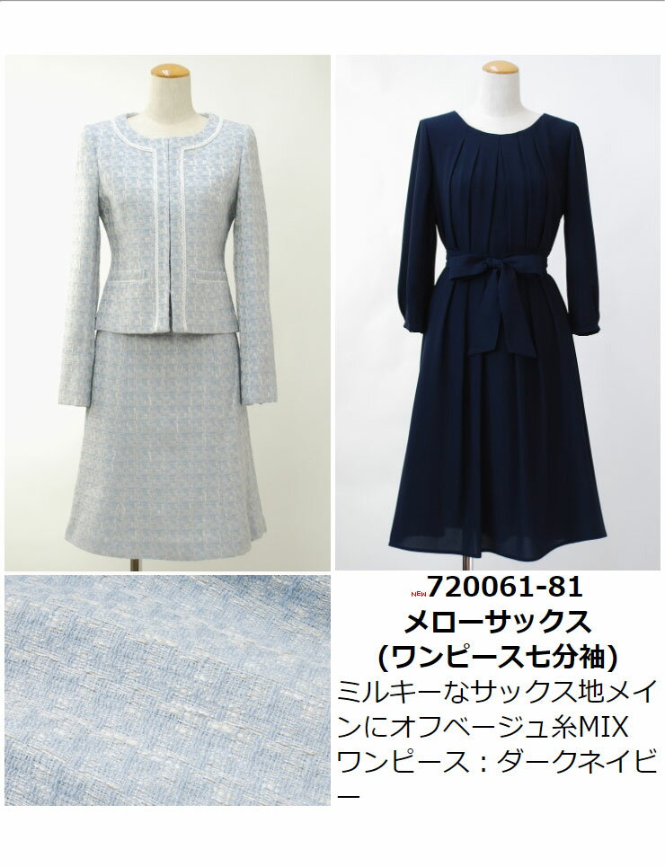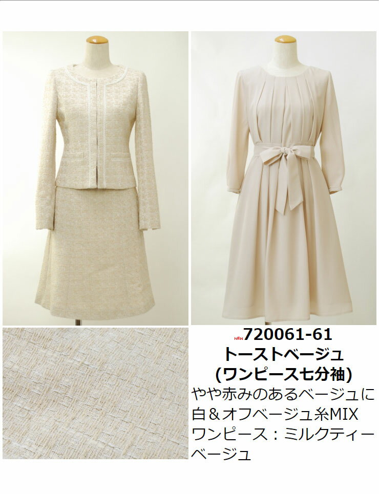 スーツ レディース セレモニースーツ 入学式 ママスーツ 卒業式◆【SALE40】ジャガード風ツイード×ジョーゼットノーカラー3点セットスーツ(ジャケット&スカート&ワンピース)[st][ フォーマル 卒園式 入園式 結婚式 セットアップ 母 ママ 30代 40代 ][hw]