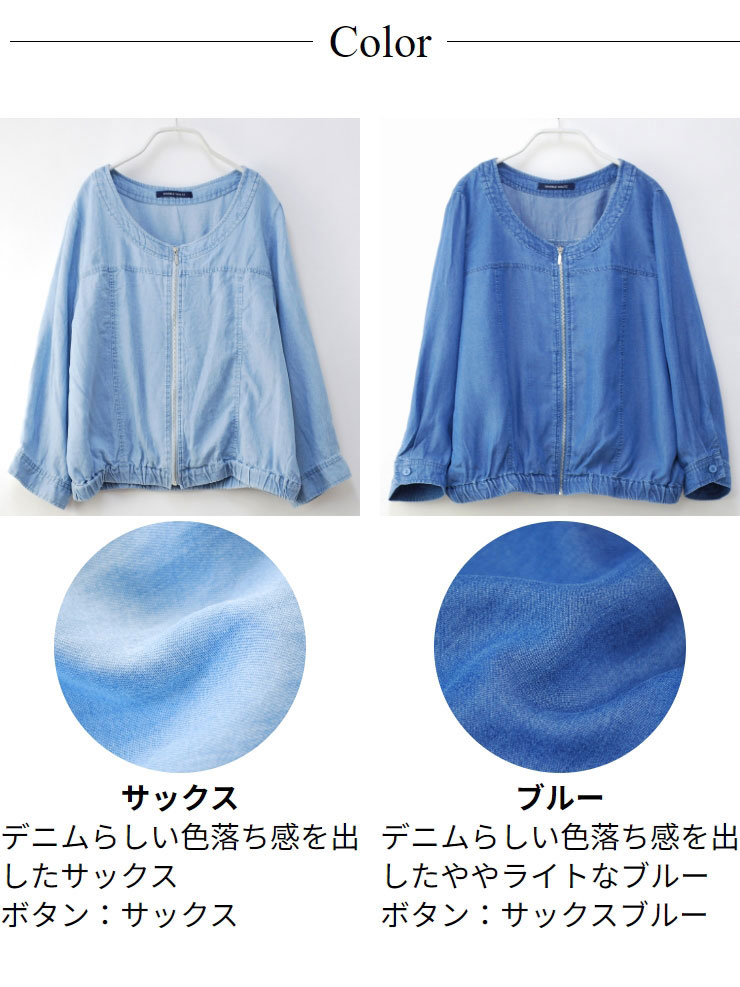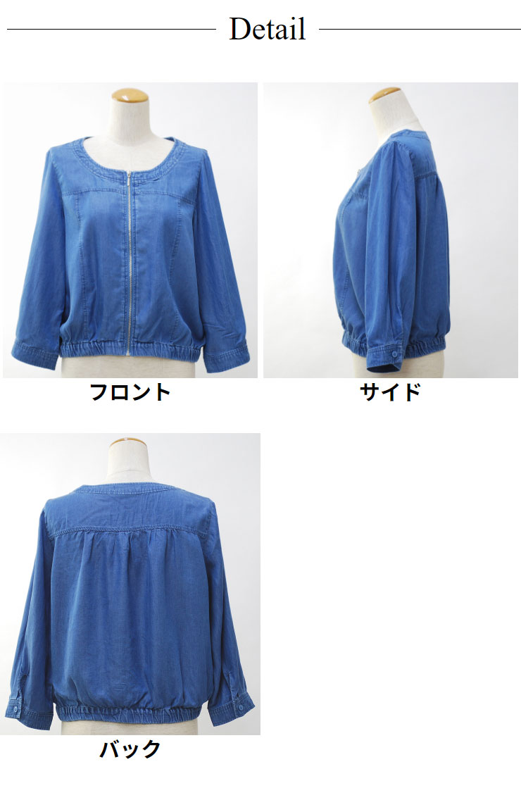 サマー デニム ブルゾン レディース トップス 春夏 ◆ 【メール便 送料無料12】【M〜L】セルロース 100% ノーカラー 七分袖 ライトデニム ブルゾン【エコ包装】[cd][ オフィス カジュアル 母 ママ 春 夏 秋 リヨセル セルロース 再生繊維 テンセル エコ 羽織り ][il]