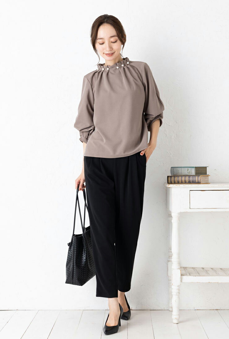 カットソー ブラウス オフィス 長袖 レディース 春秋 ◆ 【メール便 送料無料12】【M〜LL】T100% カット ジョーゼット 襟 パール調 2Way 長袖 ブラウス 見え カットソー(袖調整可)24AW【エコ包装】[cs][ オフィス カジュアル 母 ママ 春 秋 冬 フォーマル 七五三 ][dm]