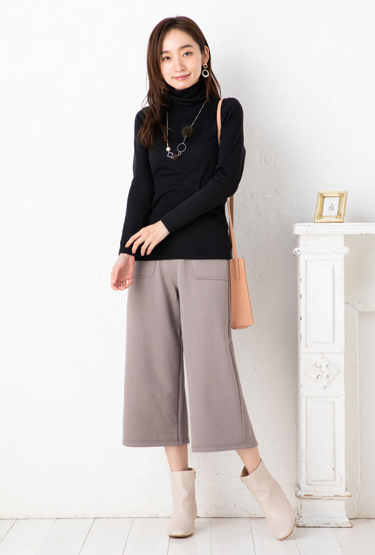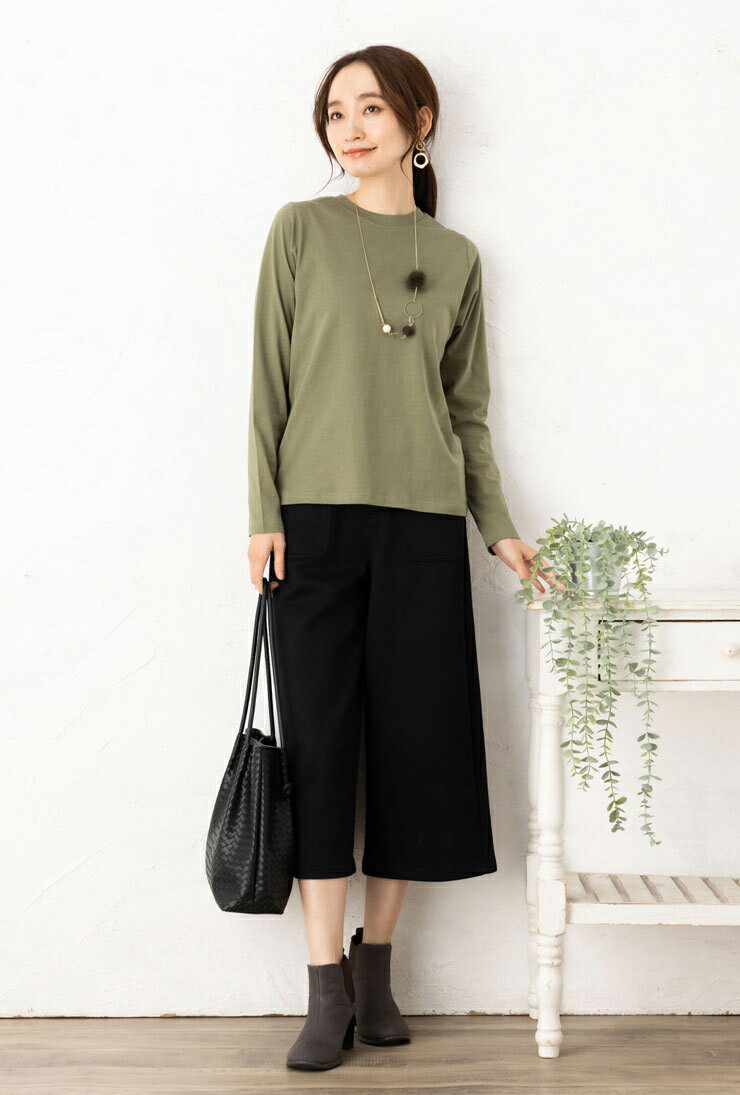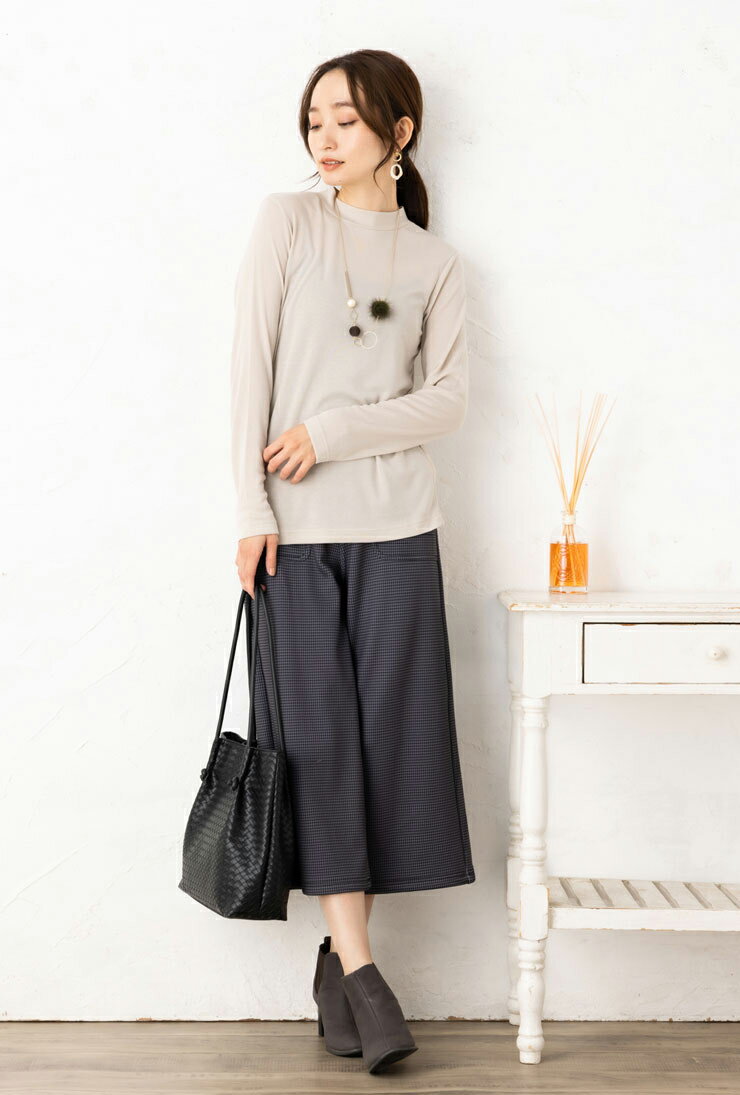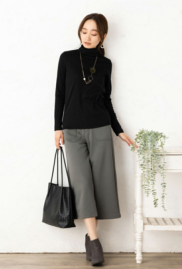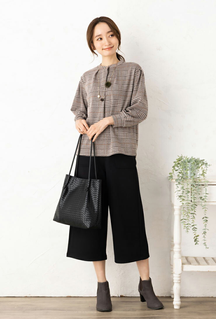 裏起毛 パンツ レディース ボトムス 秋冬 ◆【SALE30】【S~LL】ニットツイル/ピーチ 天竺裏ベロア 起毛 ボンディング ワイド クロップドパンツ(ウエストゴム)(無地/チェック)【エコ包装】[pt]■メール便不可■[ オフィス カジュアル ビジネス 母 ママ 春 秋 冬 ][rc]