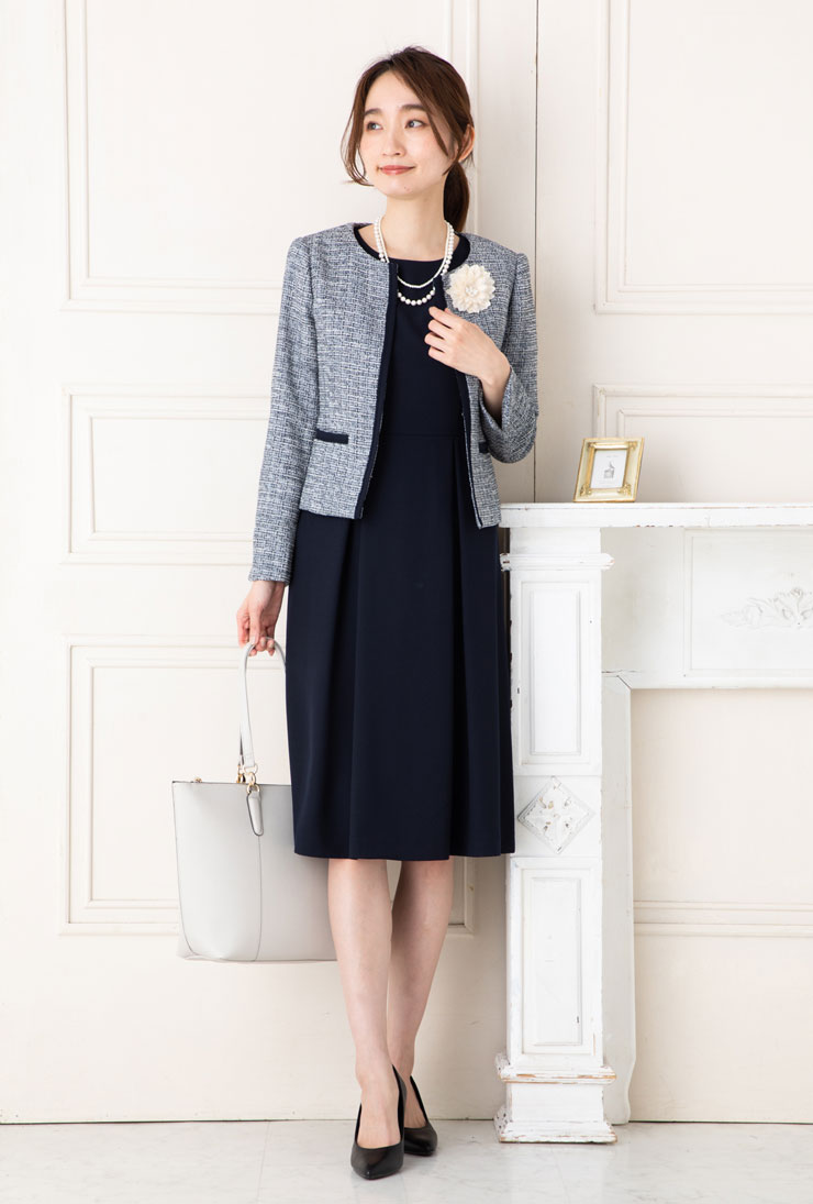 スーツ レディース セレモニースーツ 入学式 ママスーツ 卒業式◆シュガーシャーク×カラーミックスファンシーツイード×クレープジョーゼット3点セットスーツ Aタイプ (2ジャケット&ワンピース)[st][ 卒園式 入園式 結婚式 セットアップ 母 ママ 30代 40代 50代 ][at]