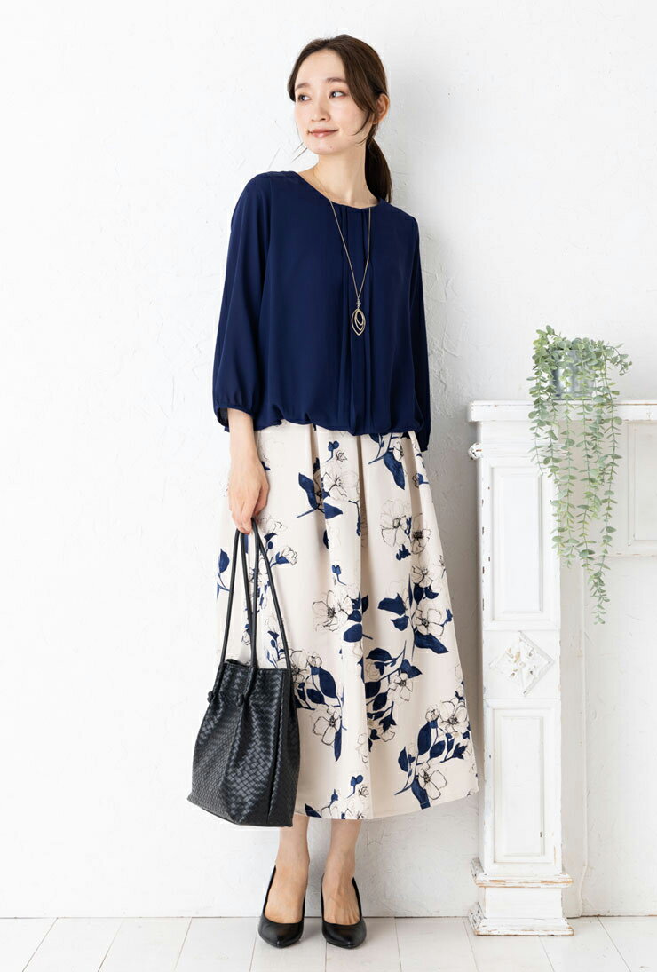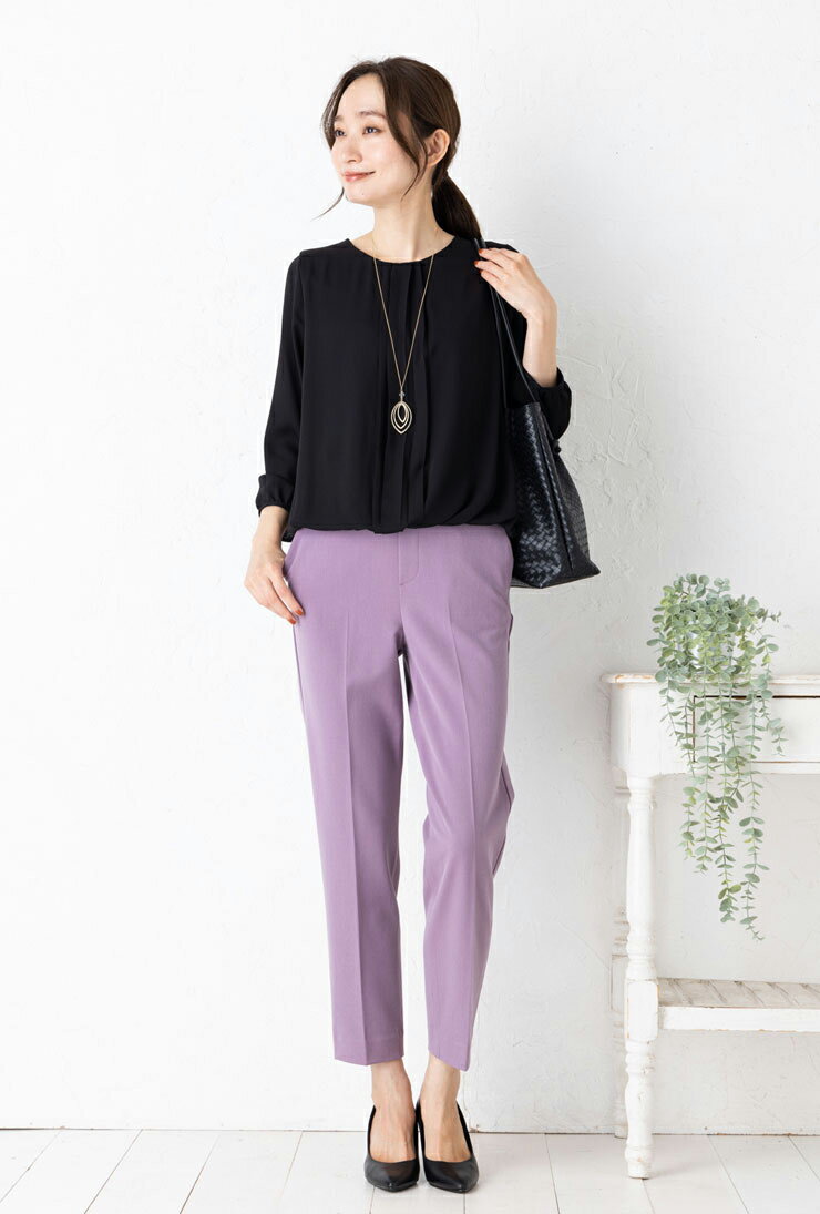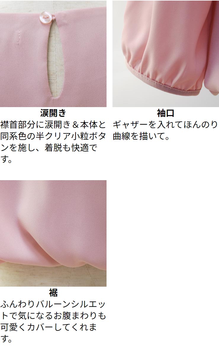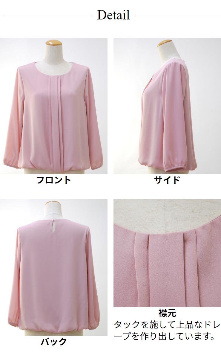 ブラウス レディース フォーマル セレモニー◆ 【メール便 送料無料06】【M〜LL】ジョーゼット 裏スムース フロント タック バルーン 九分袖 ブラウス【エコ包装】[bl][ フォーマル 入学式 入園式 卒業式 卒園式 オフィス カジュアル ママ 春 秋 冬 カットソー裏地 ][am]