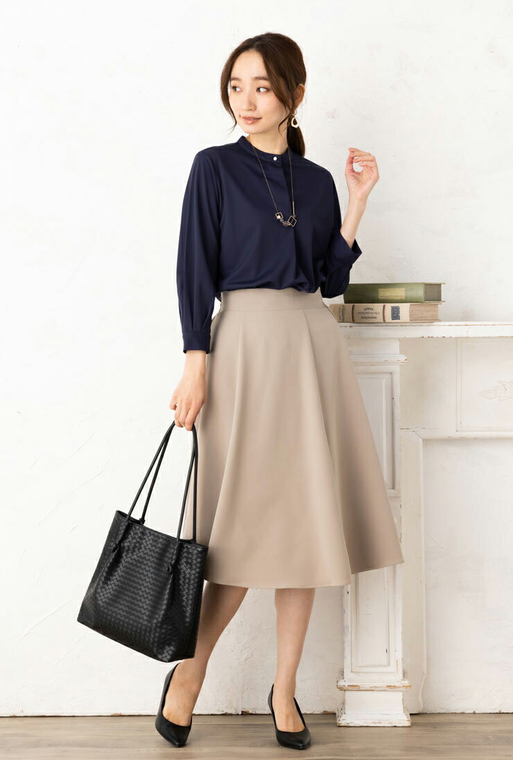 スカート ひざ丈 ミモレ レディース 春秋冬 ◆ 【メール便 送料無料12】【S〜LL】Tストレッチツイル ウォッシャブル フレア ミモレ 丈 スカート(後ろウエストゴム)【エコ包装】[sk][ フォーマル セレモニー 入学式 卒業式 七五三 オフィス カジュアル ママ 春 秋 冬 ][am]
