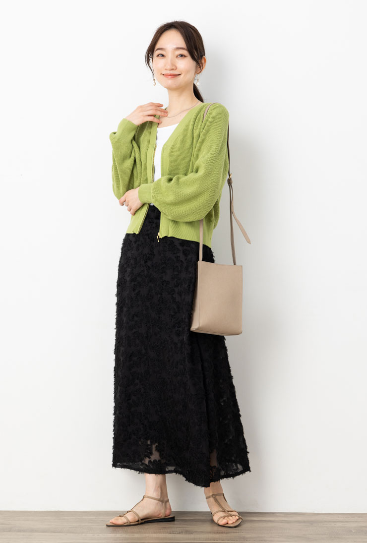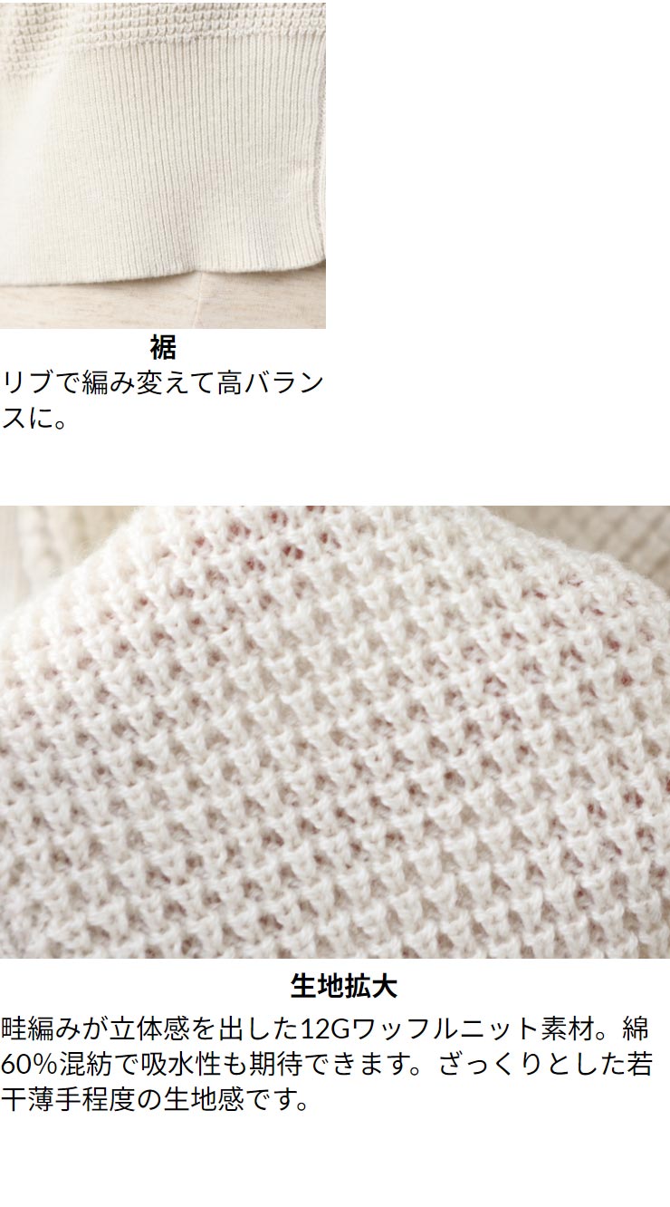 ニット カーディガン 黒 大きいサイズ レディース トップス 春秋 ◆ 【M~LL】12G 綿 混 ワッフル ジップ 使い ボリューム 長袖 ニット カーディガン【エコ包装】[cd]■メール便不可■[ オフィス カジュアル ビジネス 母 ママ 春 夏 秋 ゆったり 白 ジャンパー ][rc]
