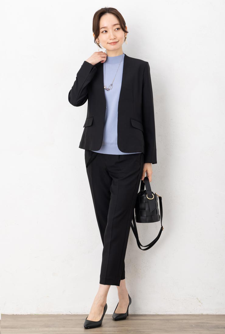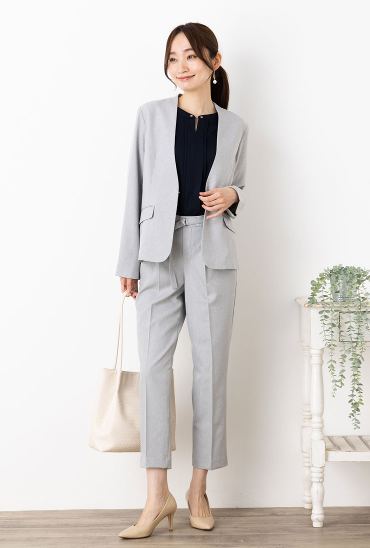 サマー ジャケット UVカット レディース アウター 春 夏 秋 ◆【S~LL】ライト合繊メランジ ストレッチ 防シワ 接触冷感 UV ウォッシャブルVノーカラー長袖ジャケット2024【エコ包装】[jk]■メール便不可■[ フォーマル セレモニー オフィス カジュアル 結婚式 ][rc]