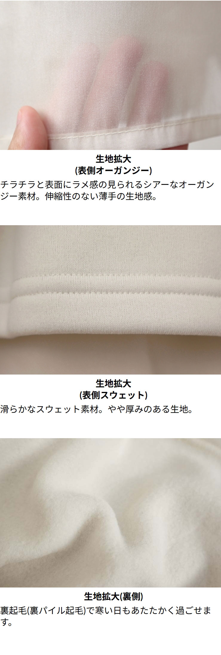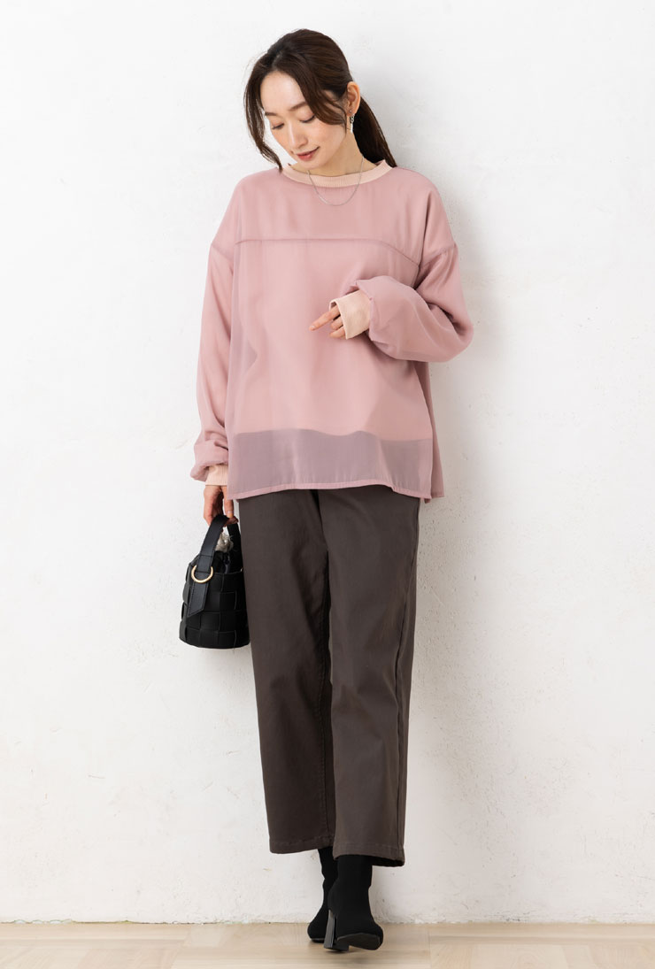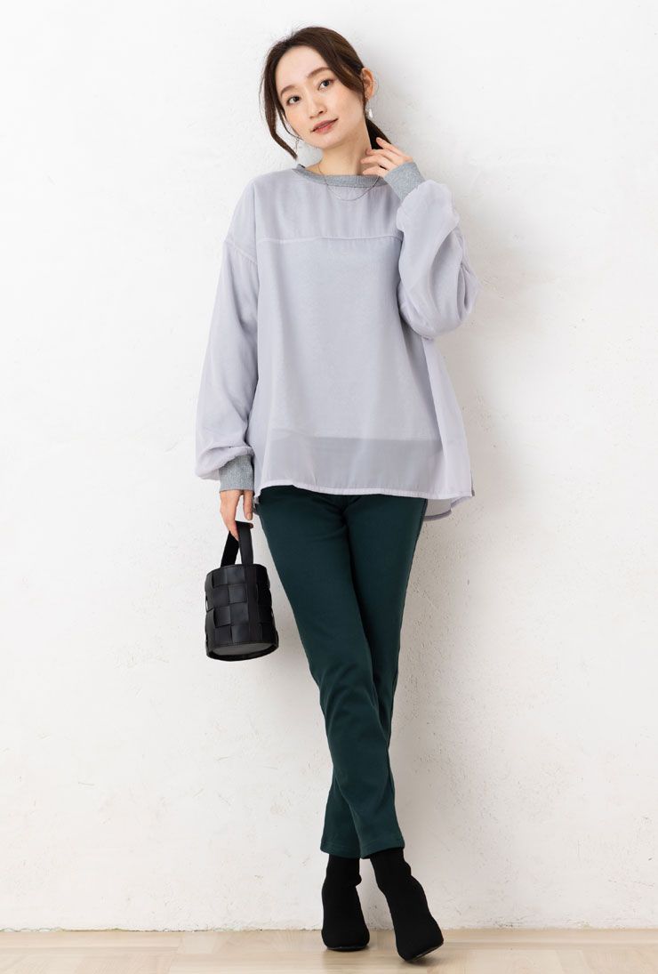 カットソー レディース トップス 秋冬春 ◆【M〜L】裏 パイル 起毛 × オーガンジー 重ね 長袖 スウェット カットソー [cs]■メール便不可■[ オフィス カジュアル ママ 春 秋 冬 シアー レイヤード 裏起毛 スエット スゥエット かわいい おしゃれ きれいめ ][rc]