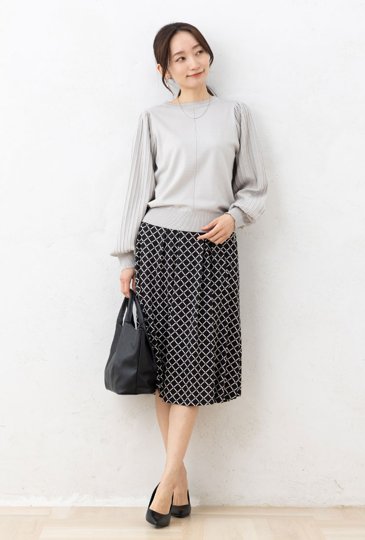 ニット レディース トップス 春 秋 冬 ◆ 【M〜LL】12GRTN PBT混 もちもち センターシーム 袖 プリーツ 長袖 ニット【エコ包装】[kt]■メール便不可■[ オフィス カジュアル ママ 大きいサイズ なめらか 可愛い レーヨン デザインススリーブ お出かけ 冬 手洗い ][rc]