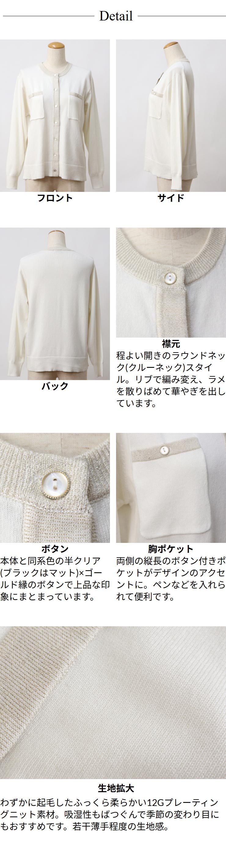 ニット カーディガン 洗える レディース 春 秋 ◆ 【メール便 送料無料12】【M〜LL】12G RN プレーティング ラメ 配色 胸 ポケット使い ニットカーディガン【エコ包装】[cd][ オフィス カジュアル ビジネス ママ 冬 ニットジャケット ジャーディガン ][rc]