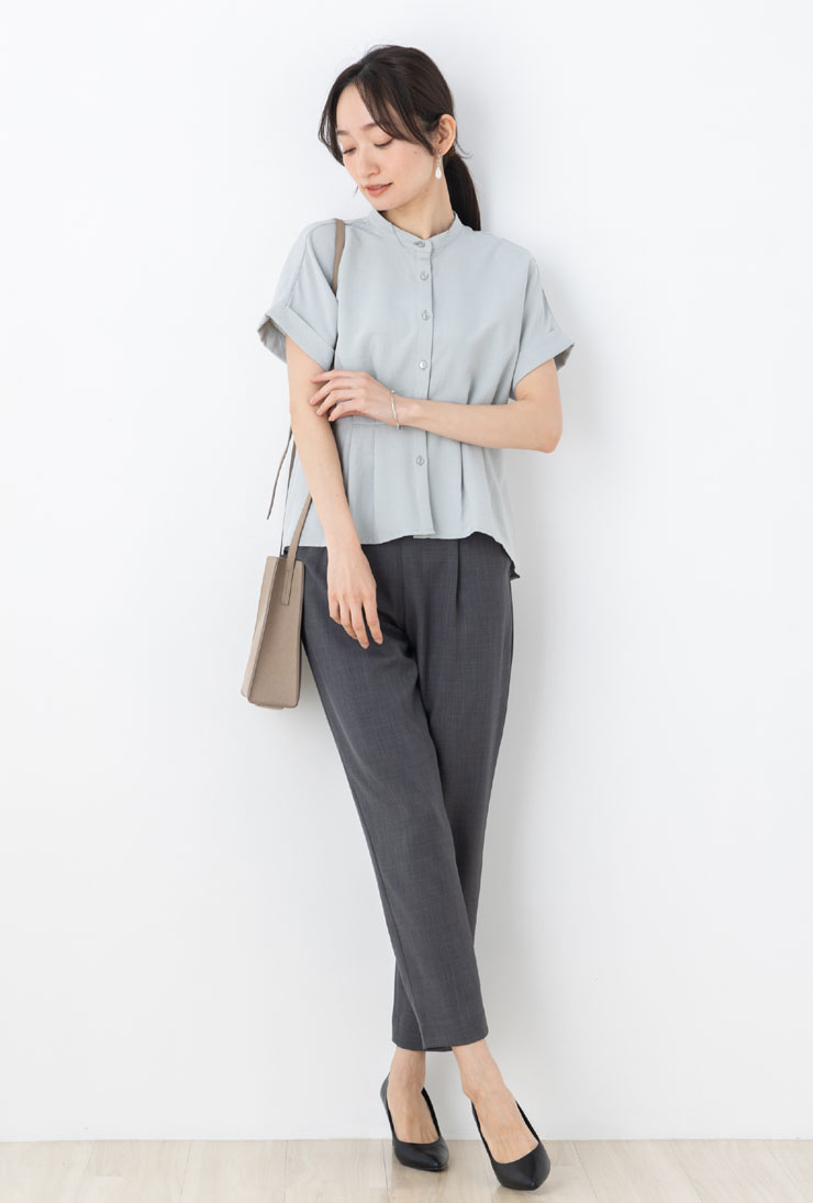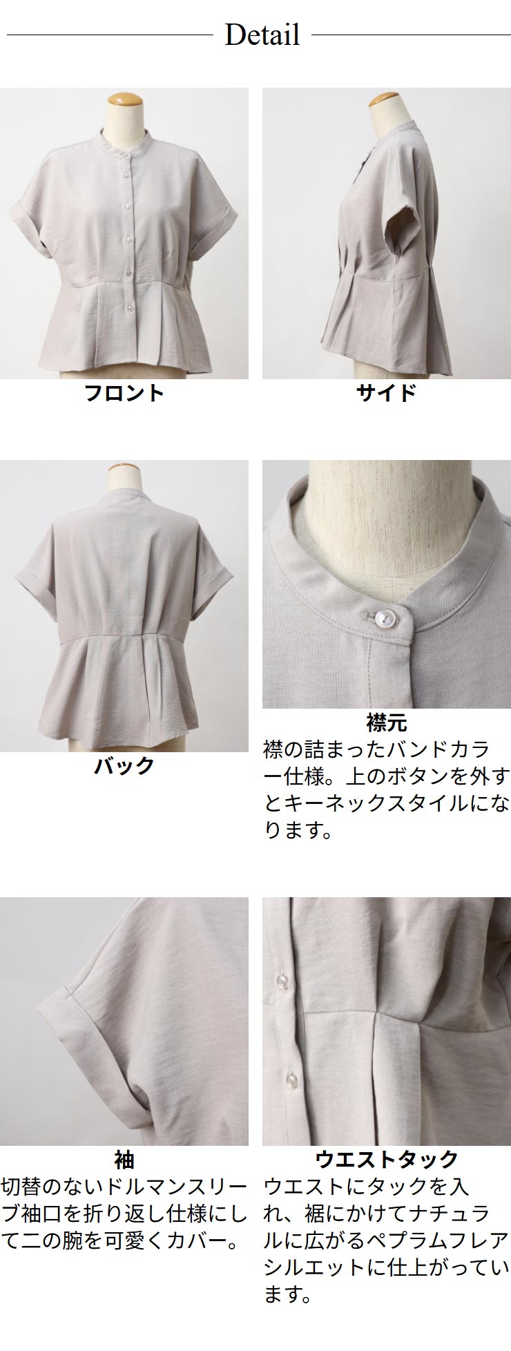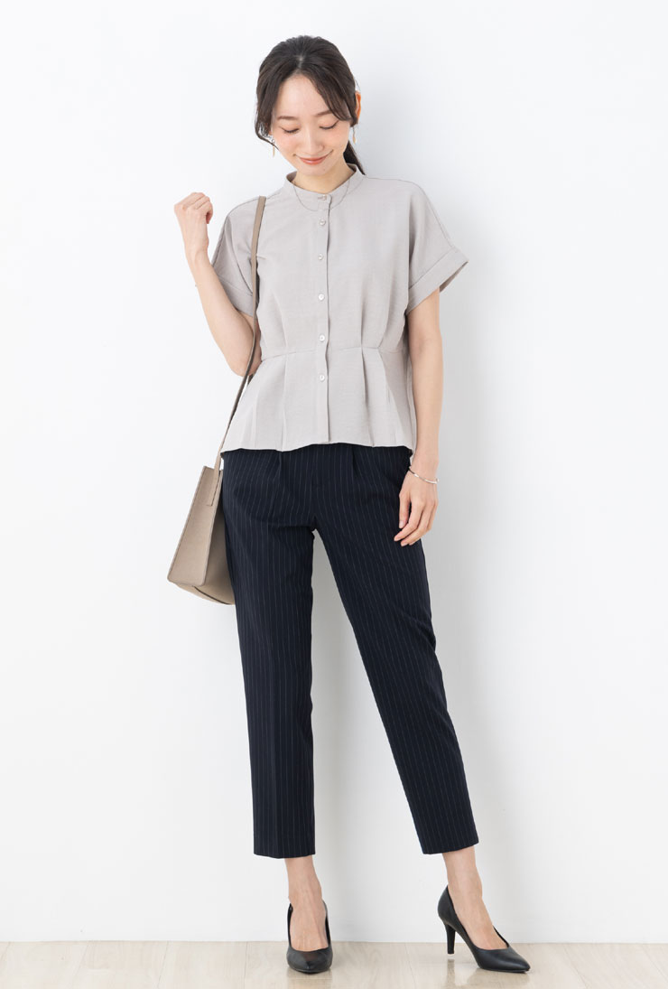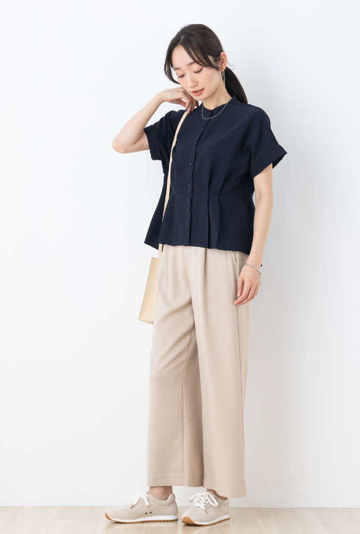 ブラウス 半袖 レディース トップス 春 夏 ◆ 【メール便 送料無料12】【S〜LL】麻調 合繊 ヴィンテージ UV カット &抗 シワ &接触冷感&ウォッシャブル ウエスト タック ペプラム 半袖 ブラウス【エコ包装】[bl][ オフィス カジュアル 大きいサイズ フレア ][rc]