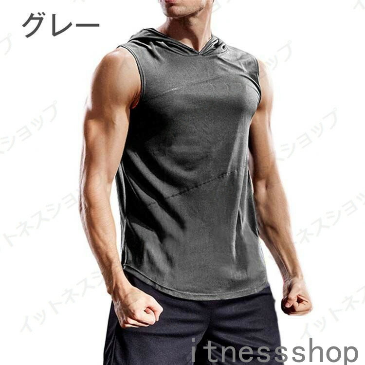 新生活 ギフト Tシャツ 運動 シャッツ パーカー ノースリーブ タンクトップ メンズ トレーニング ドライ おしゃれ カットソー 袖なし 帽子あり 夏 ヨロッパ風 男 運動 フィットネス トレーナー ジム 普段着 筋トレ トレーニングウェア