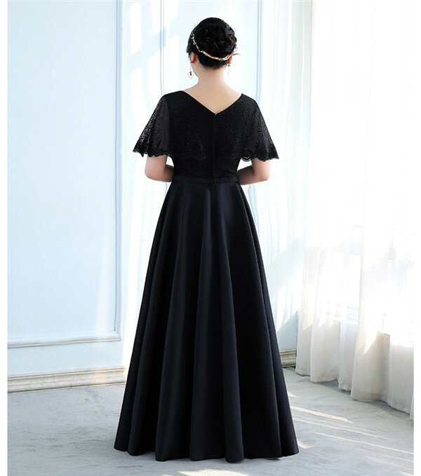 上品 ロングドレス 演奏会 袖付き 黒 韓国 フォーマル 大人 Vネック 結婚式 パーティードレス キャバロングドレス 袖あり 大きいサイズ ロング丈 発表会 同窓会 卒業式 謝恩会 成人式 レディース ワンピース 花嫁 二次会 お呼ばれ 上品 ブラック イブニングドレス