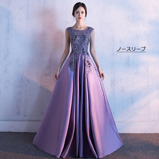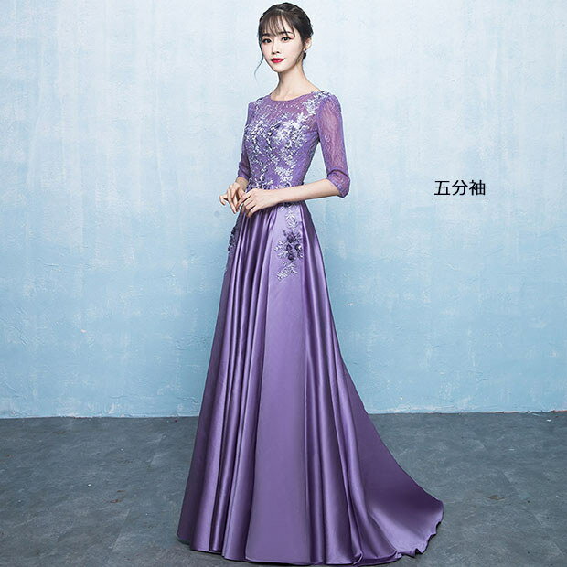 イブニングドレス ロングドレス 演奏会 袖あり カラオケドレス 衣装 ノースリーブ 五分袖 パープル ステージドレス パーティードレス スパンコール衣装 ミセス 発表会 演奏会用ドレス ピアノ 披露宴 お呼ばれ 結婚式