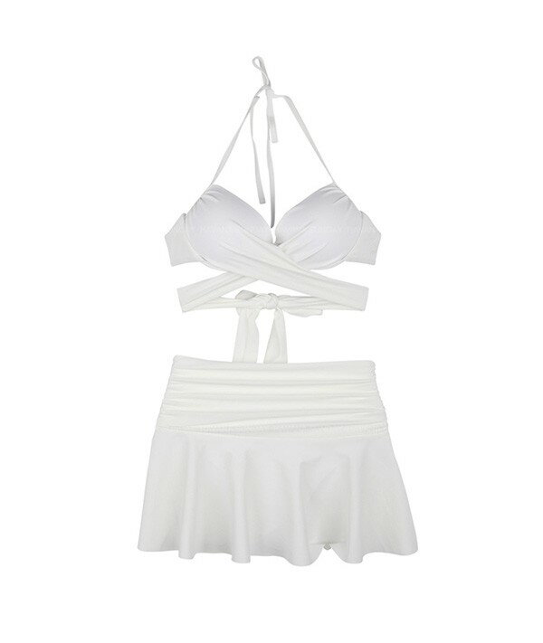 クロスビキニ 水着 ホルターネック レースアップ水着 スカート付き 紐パン ワイヤーあり パッド付 長袖 レディース ローウエスト クリスクロス ツイストバンドゥビキニ 体型カバー セパレート 海 プール 大人 女性用 df136x1