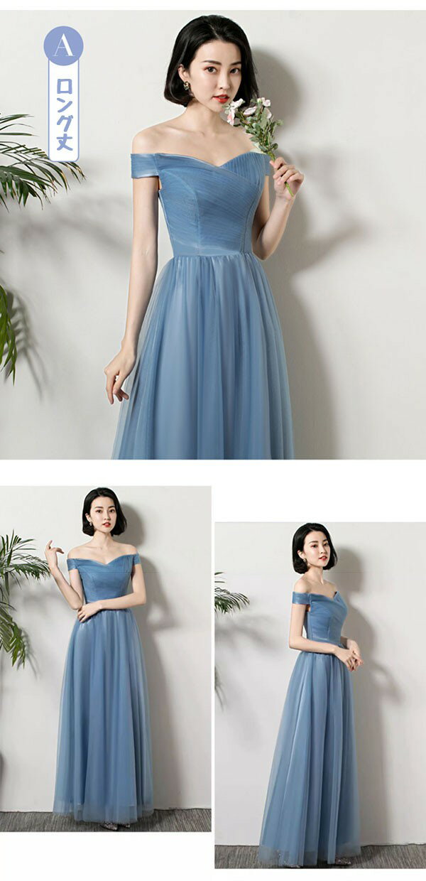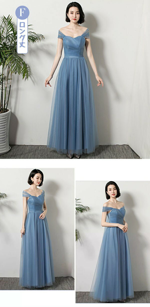 ブライズメイド ドレス ロングドレス 演奏会 ピアノ発表会 ブルー 編み上げ ショルダーネック スレンダーライン 袖付き ワンピース レディース 春秋 きれいめ 大きいサイズ 小さいサイズ 20代 30代 40代 結婚式 母親 ドレス da233x1x1l9