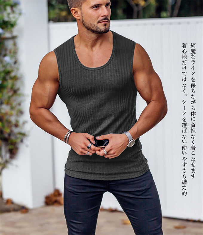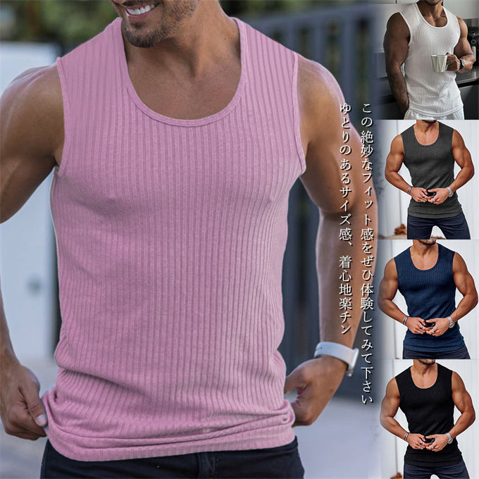 タンクトップ メンズ ノースリーブ インナー トップス ニット カットソー ストライプ スポーツウェア トレーニング フィットネス スリム 細身 お洒落 オシャレ おしゃれ カジュアル シンプル 夏物 送料無料