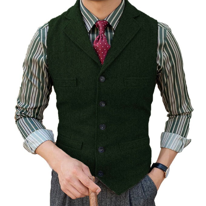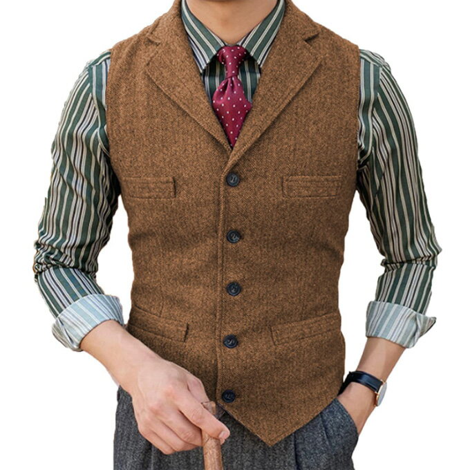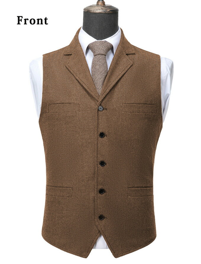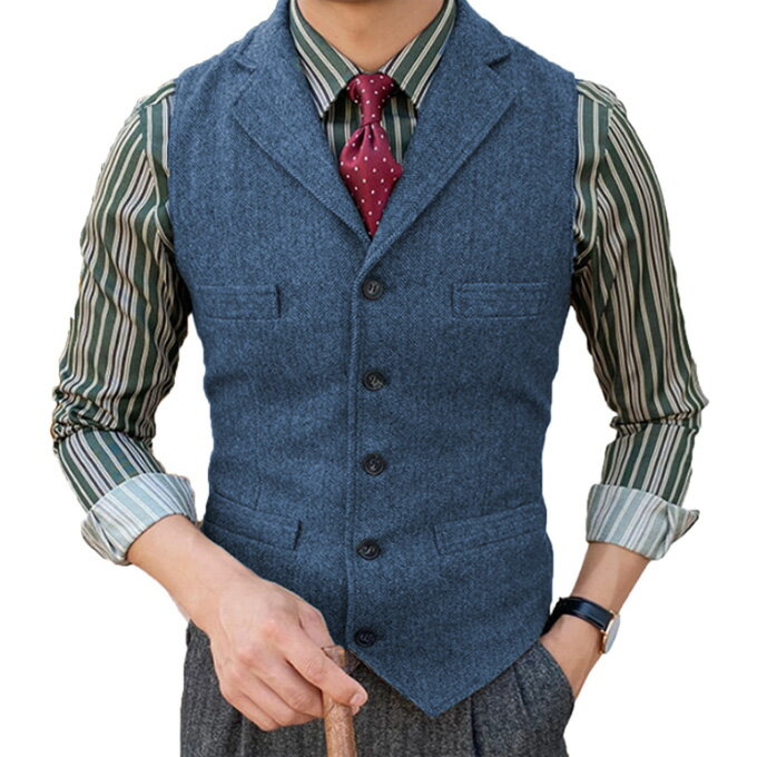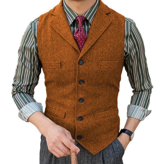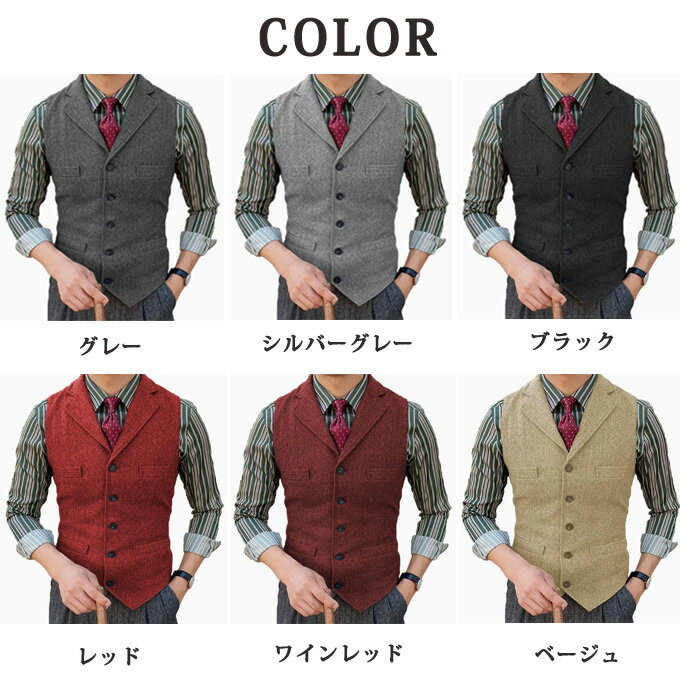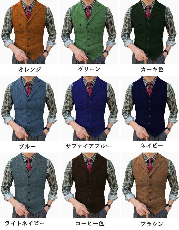 ツィードベスト 細身 フォーマル ジレ スーツベスト メンズ ウール混 ヘリンボーン ベスト ウールツィード スリム 大きいサイズ トップス Vネック ジレベスト ビジネス 結婚式 紳士服 卒業式 男性用 カジュアル 春 秋 冬 全15色 前後同じ素材 送料無料