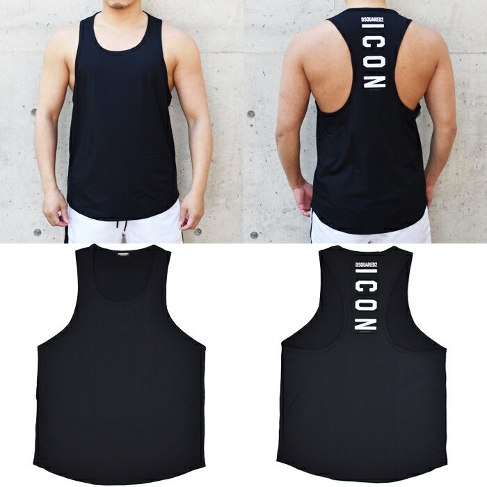 DSQUARED2 ディースクエアード ICON ロゴ バックプリント タンクトップ D9D435830 ブラック ディースクエアード アンダーウェア ラウンドカット タンクトップ メンズ タンクトップ メンズ おしゃれ トレーニング インナー 黒 筋トレ ジム