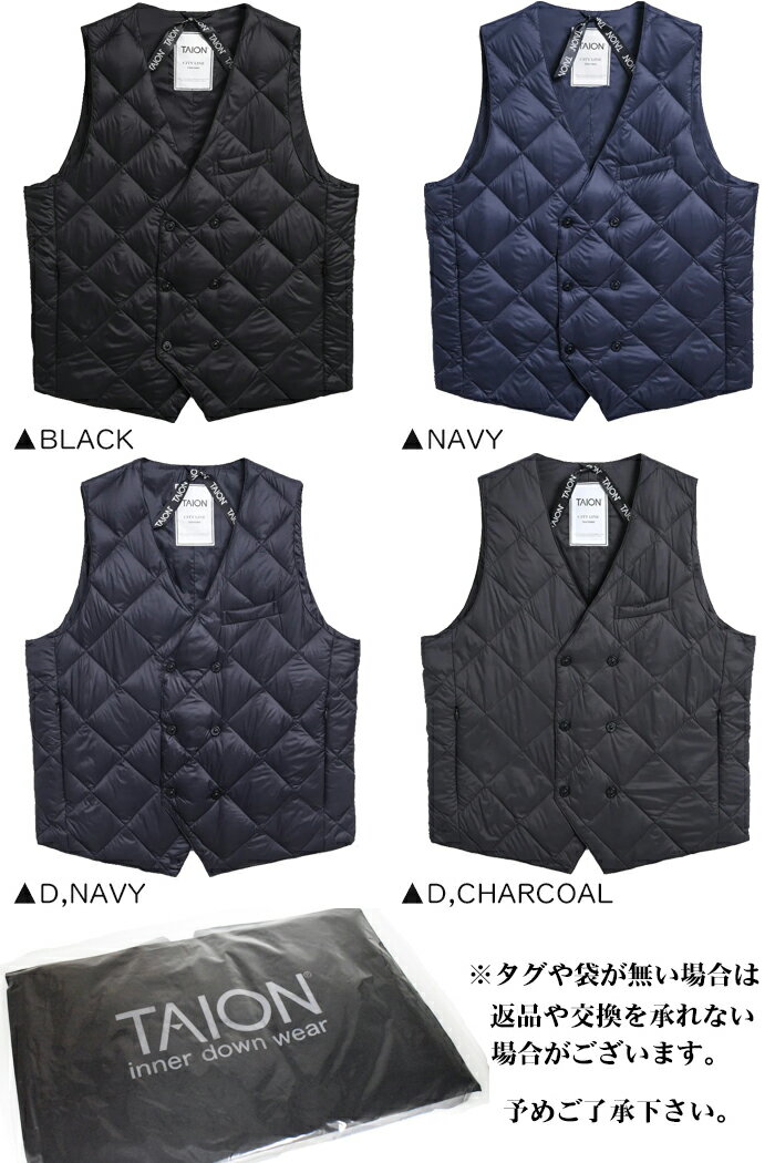TAION タイオン メンズ インナーダウンジレ 全4色 ダブルブレストダウンジレ インナーダウン ダウンベスト 軽量 インナーベスト 防寒 Vネックボタン タイオン インナー ダウン Wブレストタイプ メンズ ビジネス ダウンベスト taion0032cw コンパクト 秋 冬 通勤