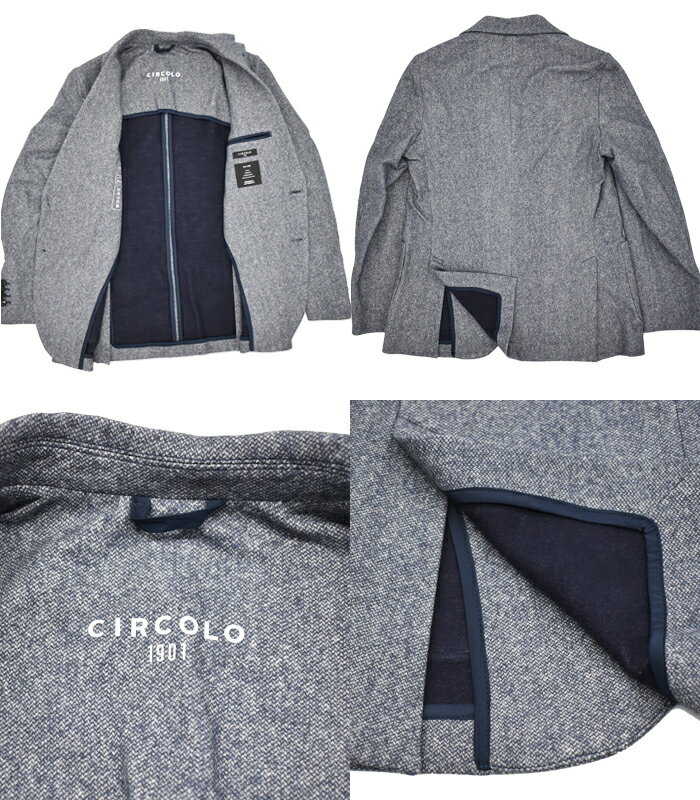 CIRCOLO 1901 チルコロ1901 コットンジャージー セットアップ BLU メンズ テーラードジャケット ストレッチ ホームスパン シングル ストレッチ ウエストコード パンツ CN4046 CN4077