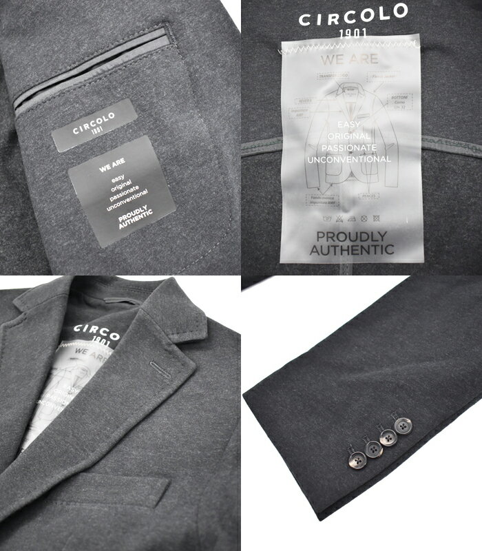 CIRCOLO 1901 チルコロ1901 コットンジャージー セットアップ NERO MELANGE メンズ テーラードジャケット ストレッチ ホームスパン シングル ストレッチ ウエストコード パンツ CN4006 CN4009
