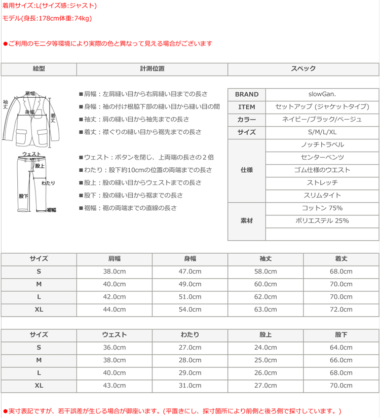 SLOWGAN スローガン テーラードジャケット&パンツセット セットアップ メンズ 上下セット カジュアル ネイビー グレー