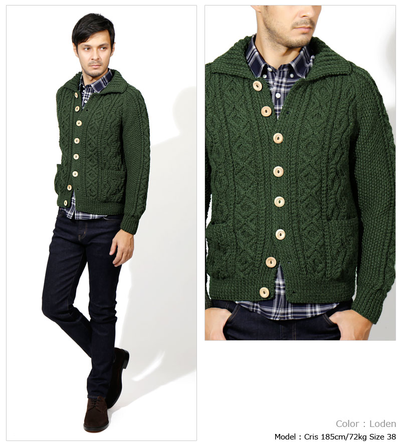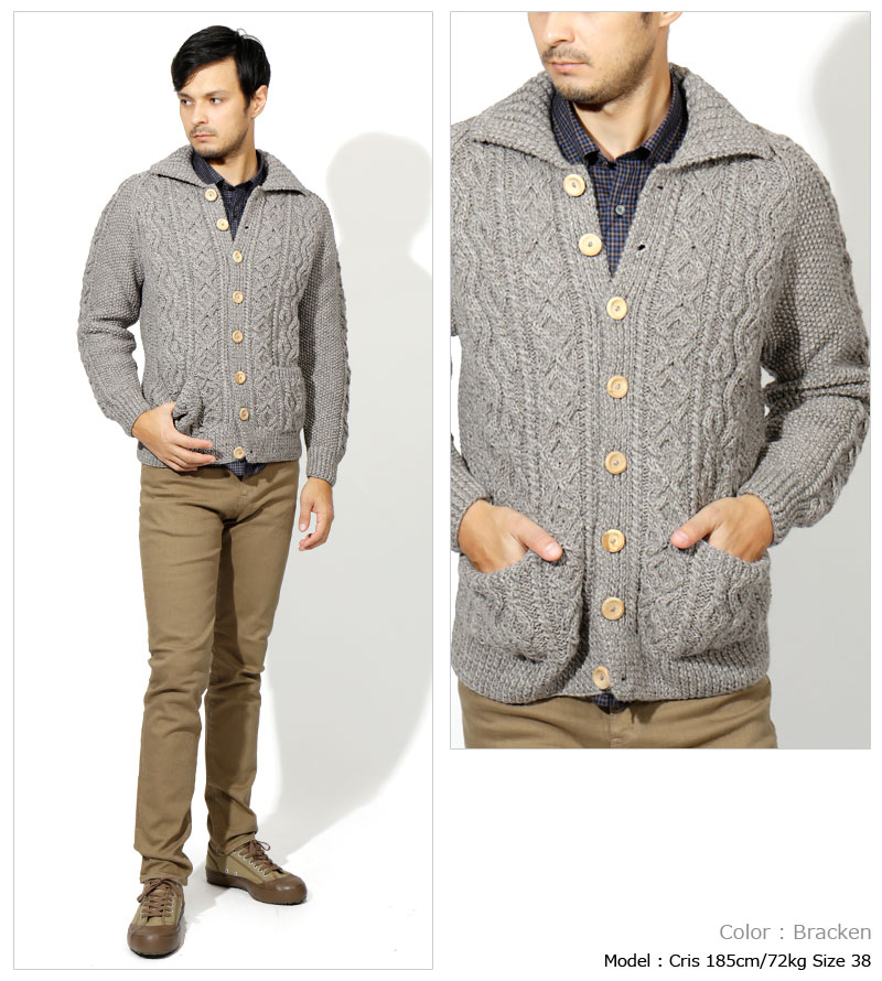 [期間SALE] inverallan/インバーアラン ニットカーディガン 3A LUMBER[メンズ 長袖 ニット セーター カーデガン カーディガン セーター インターナショナルモデル スコットランド ウール ハンドニットおしゃれ かっこいい 紳士 冬物 大人 彼氏 プレゼント]
