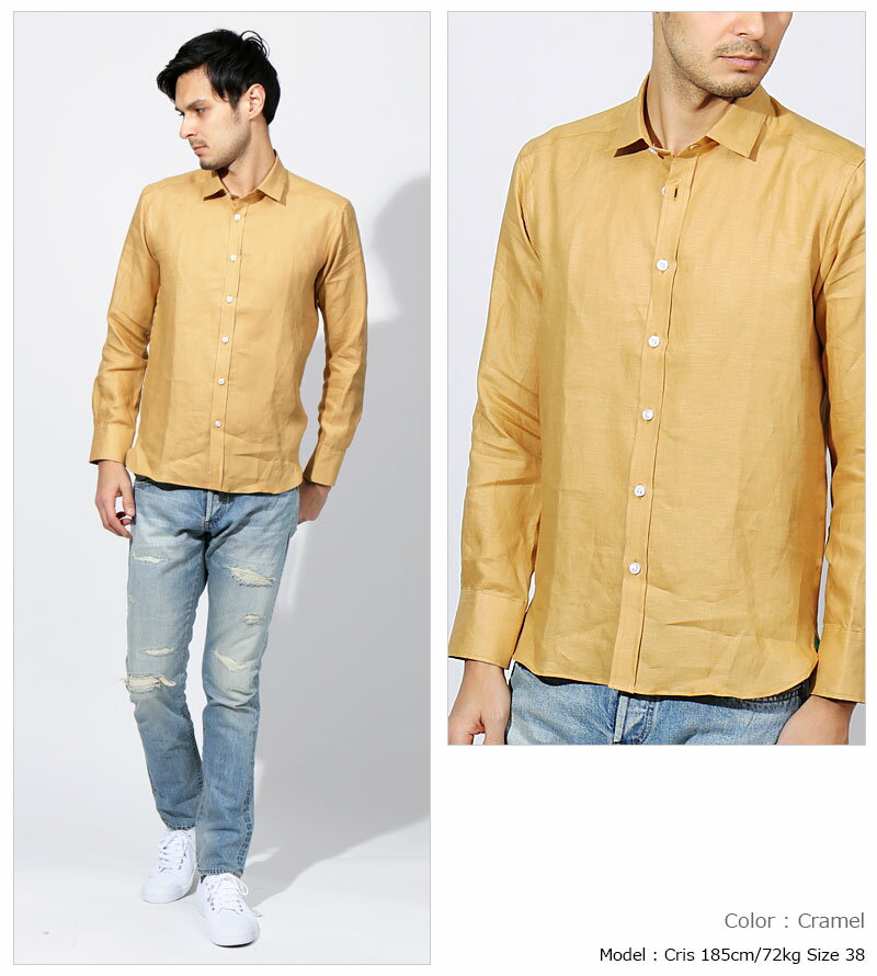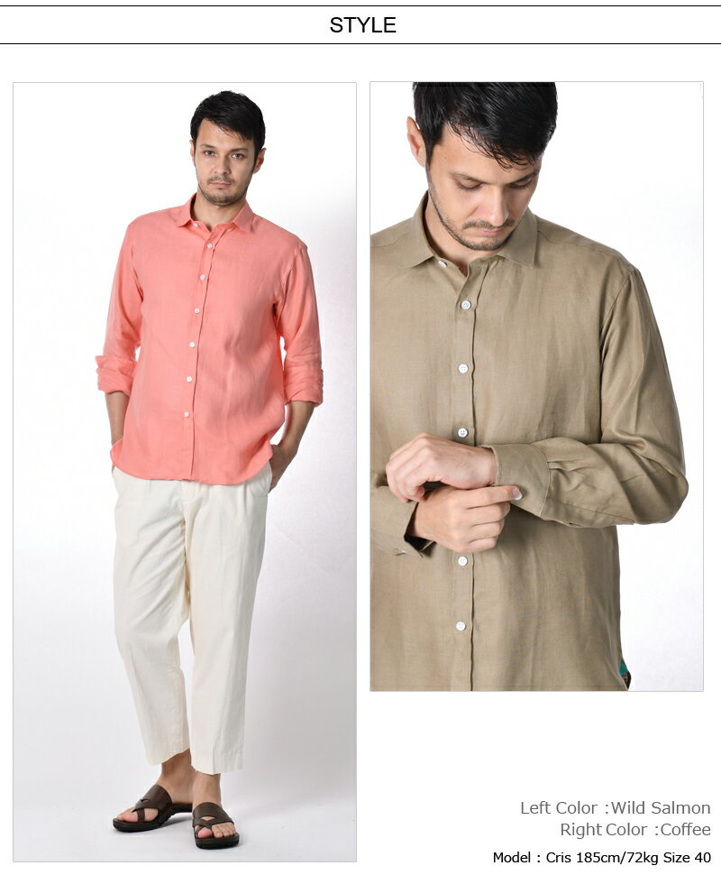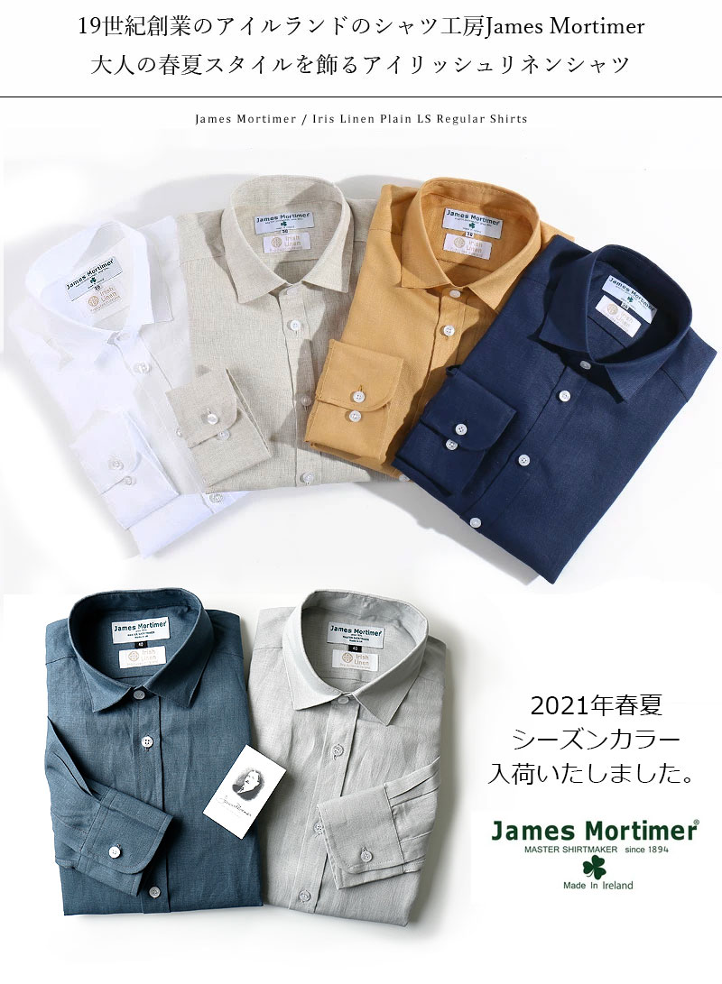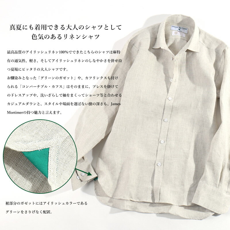 JamesMortimer/ジェームズモルティマー L/S アイリッシュリネン レギュラーカラーシャツ[メンズ リネンシャツ 麻 涼しい 通気性 長袖 リゾートシャツ アイルランド オフ こだわり ボタンダウン おしゃれ かっこいい 紳士 大人 彼氏 プレゼント 父の日]