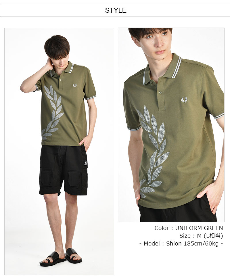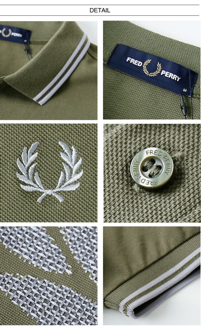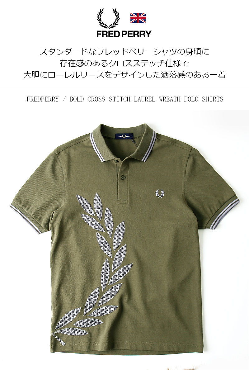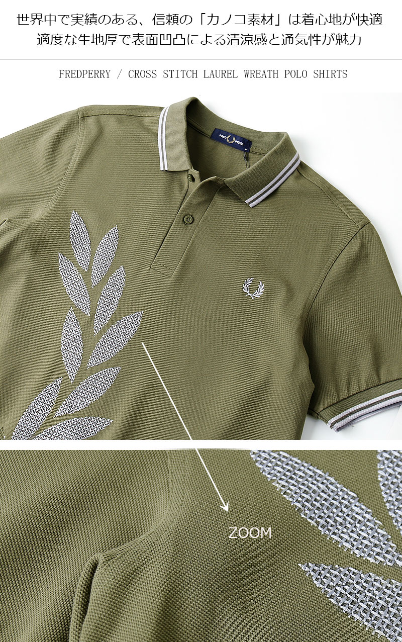 FRED PERRY/フレッドペリー CROSS STITCH LAUREL WREATH FPS M5672 ポロシャツ [メンズ 半袖 デザイン クロスステッチ 鹿の子 カノコ コットン カーキ モスグリーン 刺繍 おしゃれ 英国 UK 大人 プレゼント 父の日]