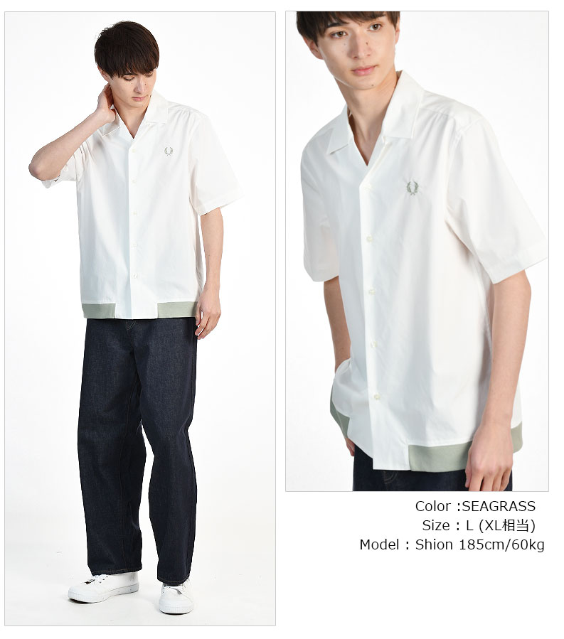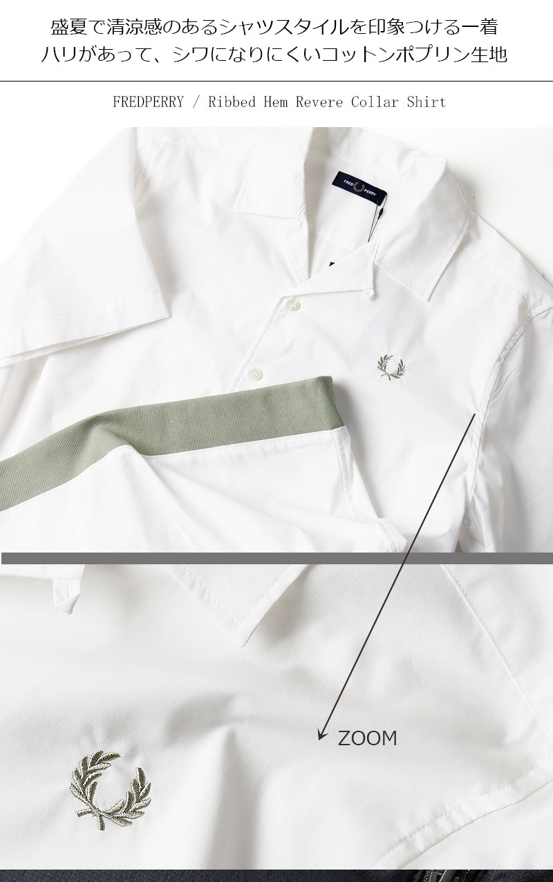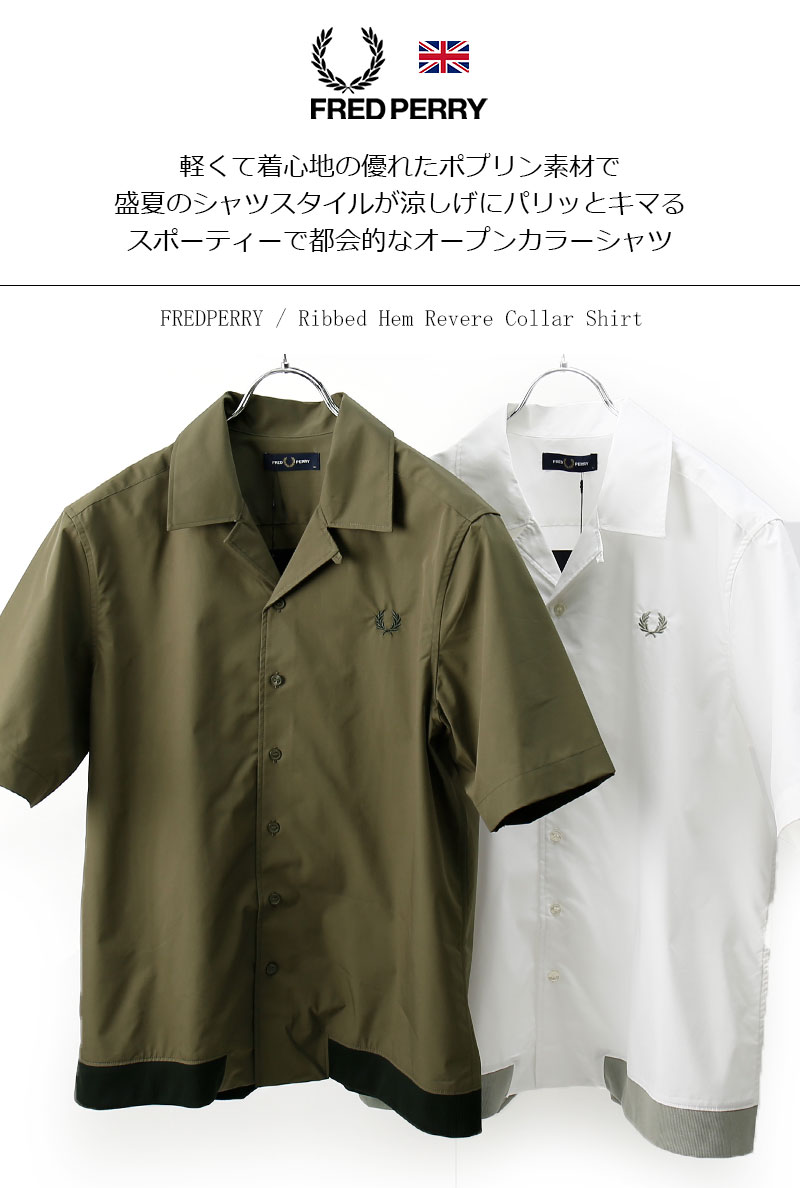 FRED PERRY/フレッドペリー RIBBED HEM REVERE COLLAR SHIRT M5705 オープンカラーシャツ ソロナポプリン[23年春新作 メンズ コットンポプリン 裾リブ 半袖 ワンポイント 刺繍 おしゃれ 英国 UK 大人 プレゼント 父の日]