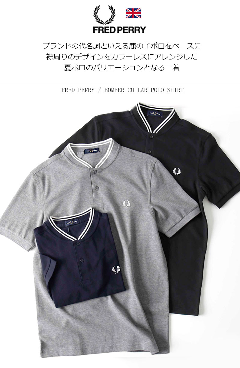 FRED PERRY/フレッドペリー BOMBER COLLAR POLO SHIRT M4526 半袖鹿の子素材ポロシャツ[24年春夏新作 メンズ ボンバー ワンポイント コットン 綿 英国 UK きれい おしゃれ かっこいい父の日 夏服 夏 大人 彼氏 プレゼント]