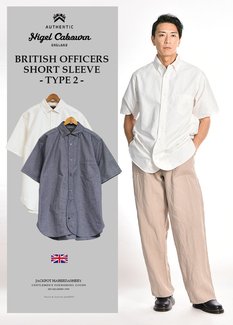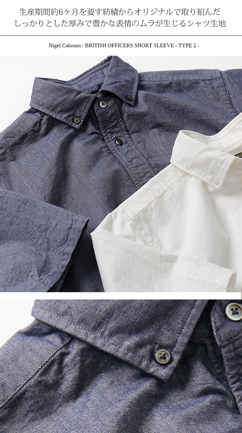 Nigel Cabourn/ナイジェル・ケーボン ブリティッシュオフィサーズシャツ タイプ2 ショートスリーブ オックス 半袖 BRITISH OFFICERS SHIRTS TYPE2 S/S 80480011001[24年春夏新作 メンズ コットン ウォッシュ加工 ゆったり ナイジェルケーボン おしゃれ 夏]