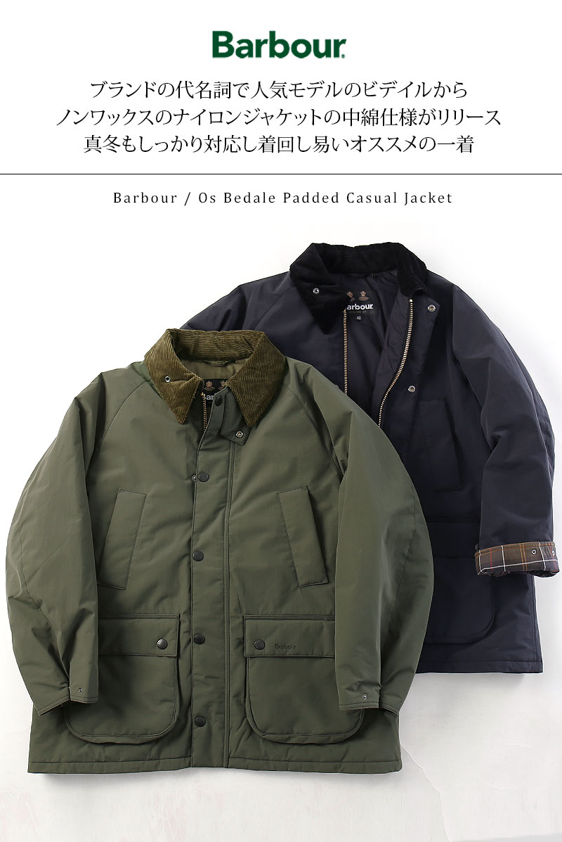 Barbour/バブアー Os Bedale Padded Casual Jacket MCA1003 ビデイル ノンワックス 暖かい 中綿 パッテッド ナイロンジャケット [24年秋冬新作 ピーチスキン素材 オーバーサイズおしゃれ かっこいい UK 英国 ロイヤルワラント 冬 大人 彼氏 プレゼント]