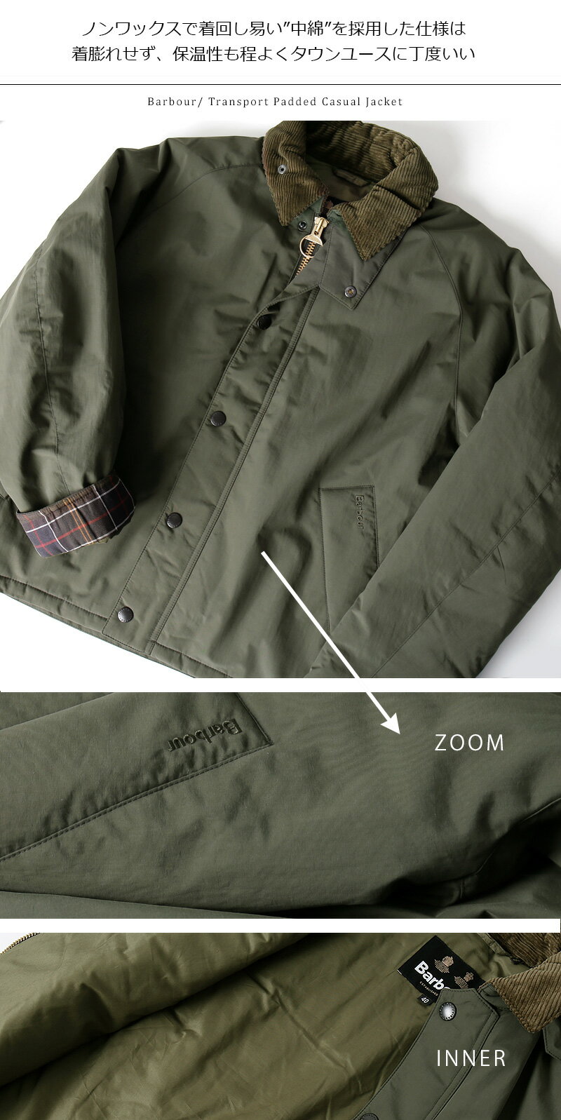 Barbour/バブアー Transport Padded Casual Jacket MCA1005 トランスポート 中綿ナイロンジャケット ノンワックス 暖かい パッテッド [24年秋冬新作 ピーチスキン素材 ショート丈 ユニセックス おしゃれ かっこいい UK 英国 冬 大人 彼氏 プレゼント]