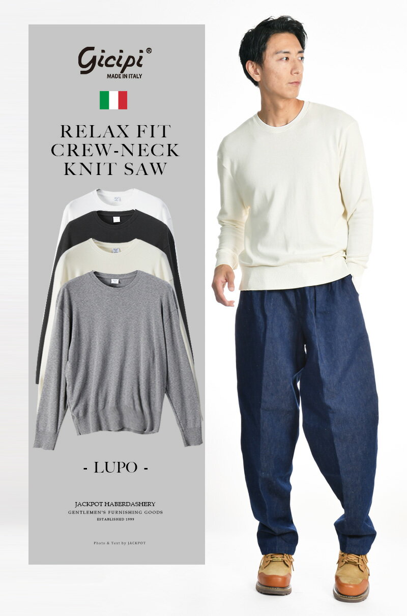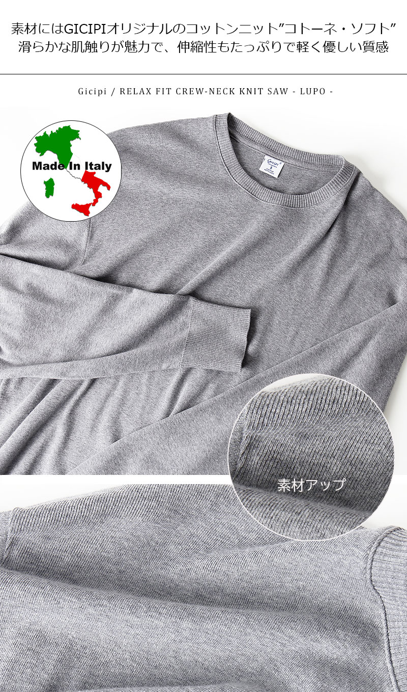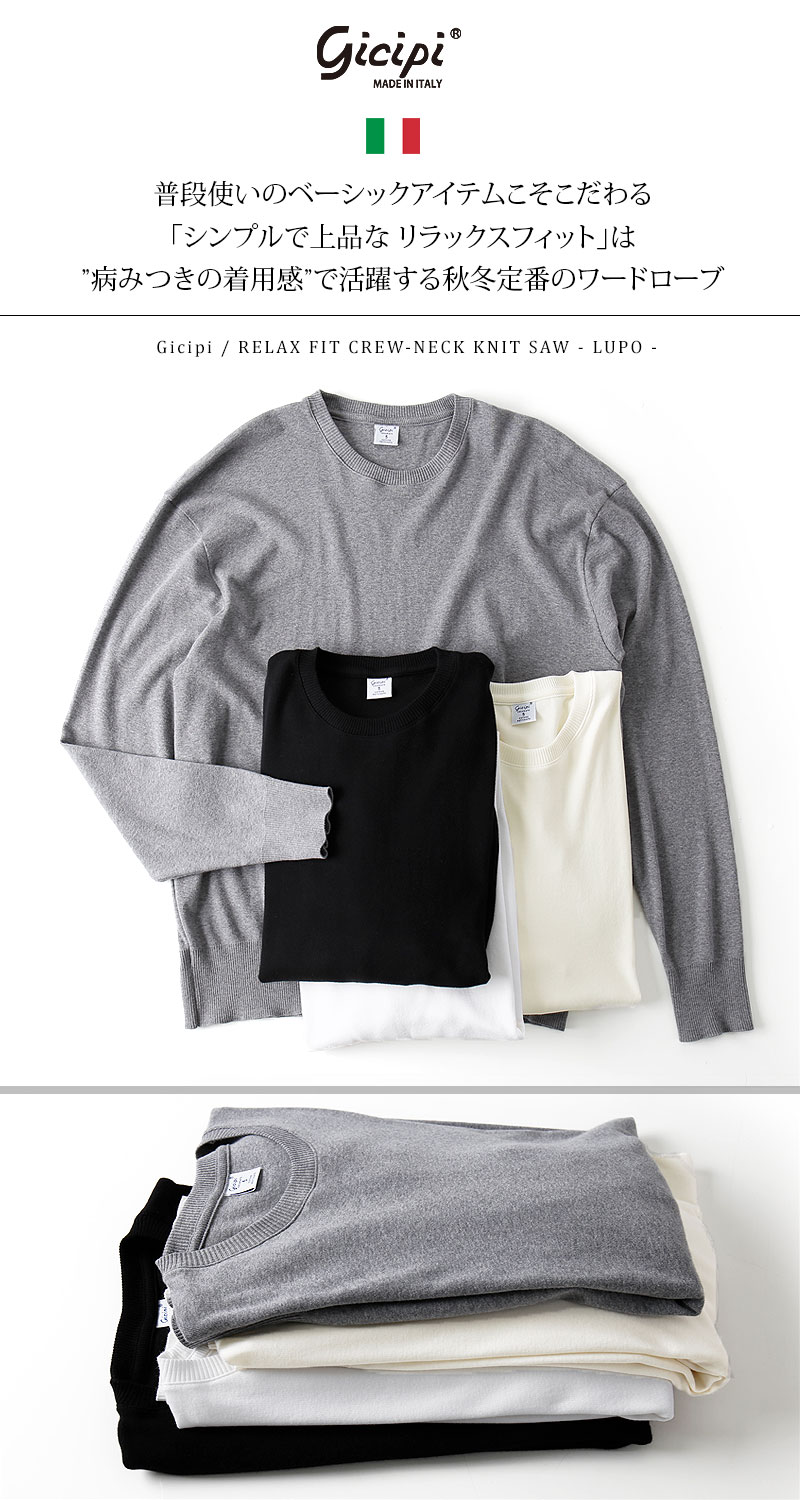 Gicipi/ジチピ LUPO クルーネック リラックスフィット ニットソー コットンソフト ルーポ 2401A COTONE SOFT[24年秋冬新作 メンズ 長袖 イタリア製 無地 コットン100 綿100 ミラノリブニットソー フライス素材 レディース ユニセックス]