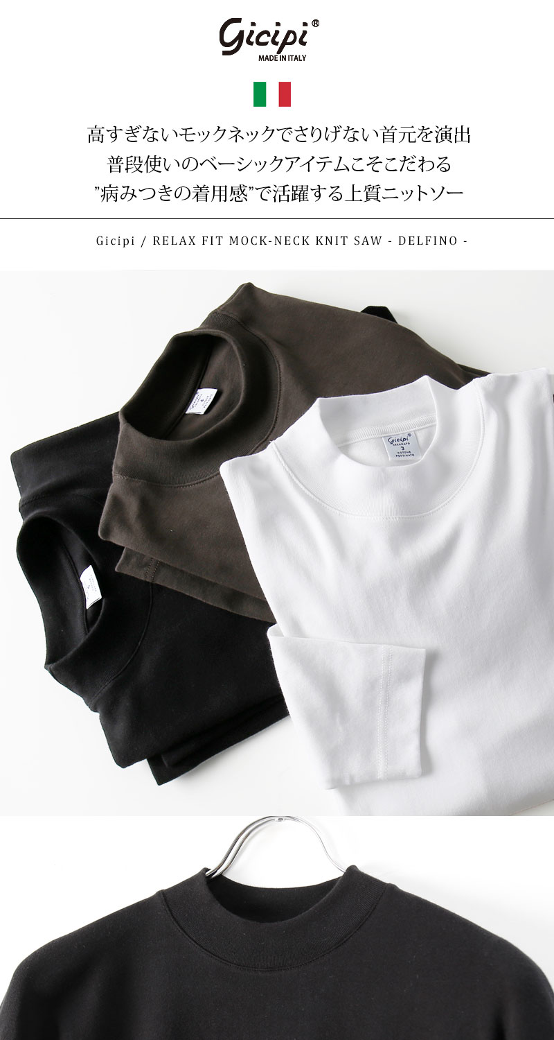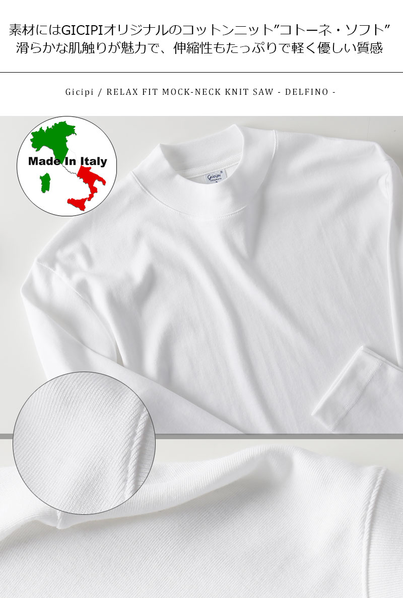Gicipi/ジチピ DELFINO モックネック リラックスフィット ニットソー コットンソフト デルフィーノ 2409A COSTINA SOFT[24年秋冬新作 メンズ 長袖 イタリア製 無地 コットン100 綿100 ミラノリブニットソー フライス素材 レディース ユニセックス]